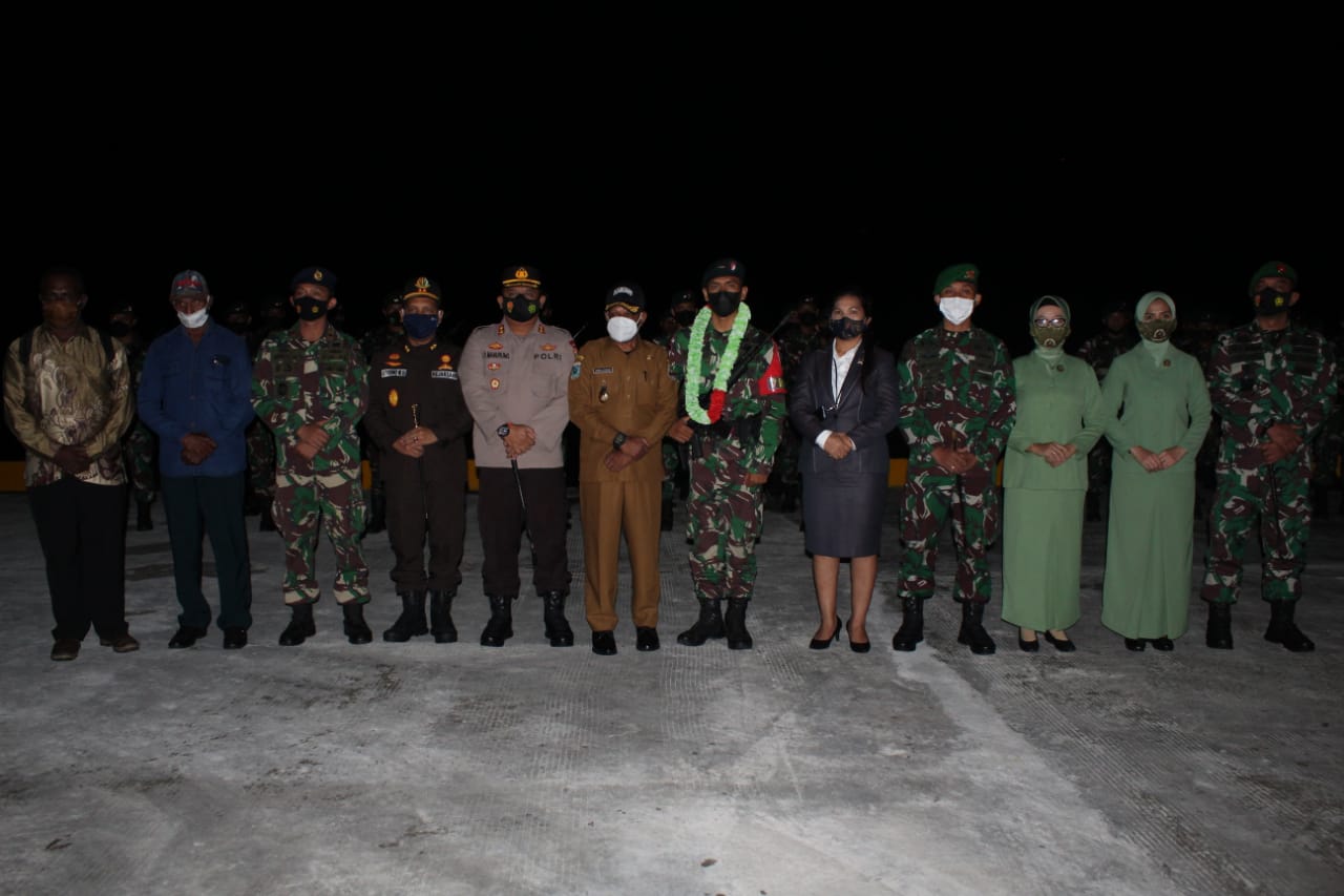 Pasukan yang tiba pada Senin (7/6/2021) malam dengan menumpang KM Tidar tersebut disambut secara resmi oleh Forkopimda Kabupaten Kaimana dalam suatu upacara penyambutan di Dermaga Utama Pelabuhan Kelas-III Kabupaten Kaimana, Papua Barat, dengan Inspektur Upacara Hasbullah Furuada, S.P., Wakil Bupati (Wabup) Kabupaten Kaimana.