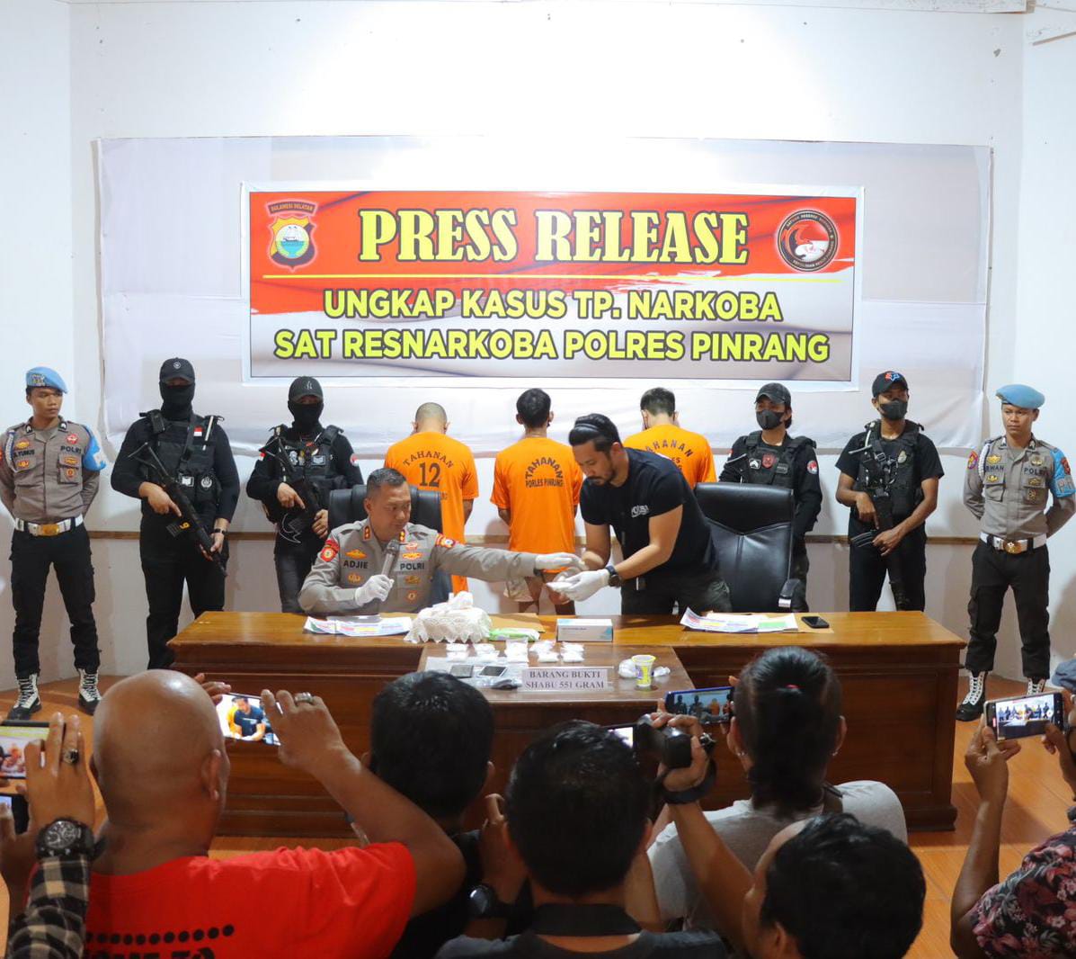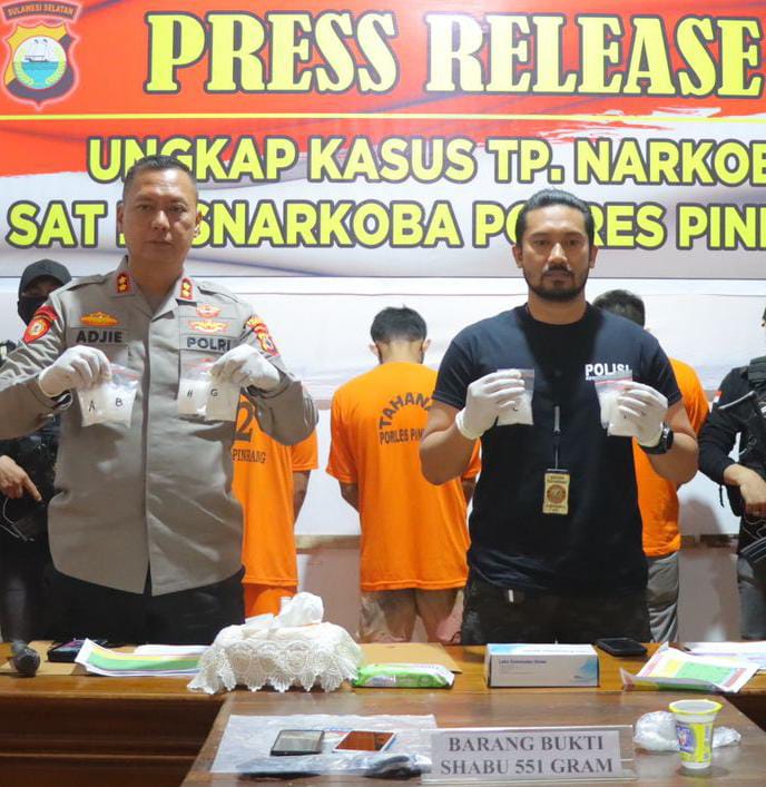 Kapolres Pinrang dalam penjelasannya pada kegiatan press release pengungkapan kasus besar Narkotika dengan jumlah 10 sachet besar (10 ball) mengatakan, pengungkapan tindak pidana penyalahgunaan narkotika jenis sabu dengan jumlah 10 ball atau berat bruto 501 Gram (G).”