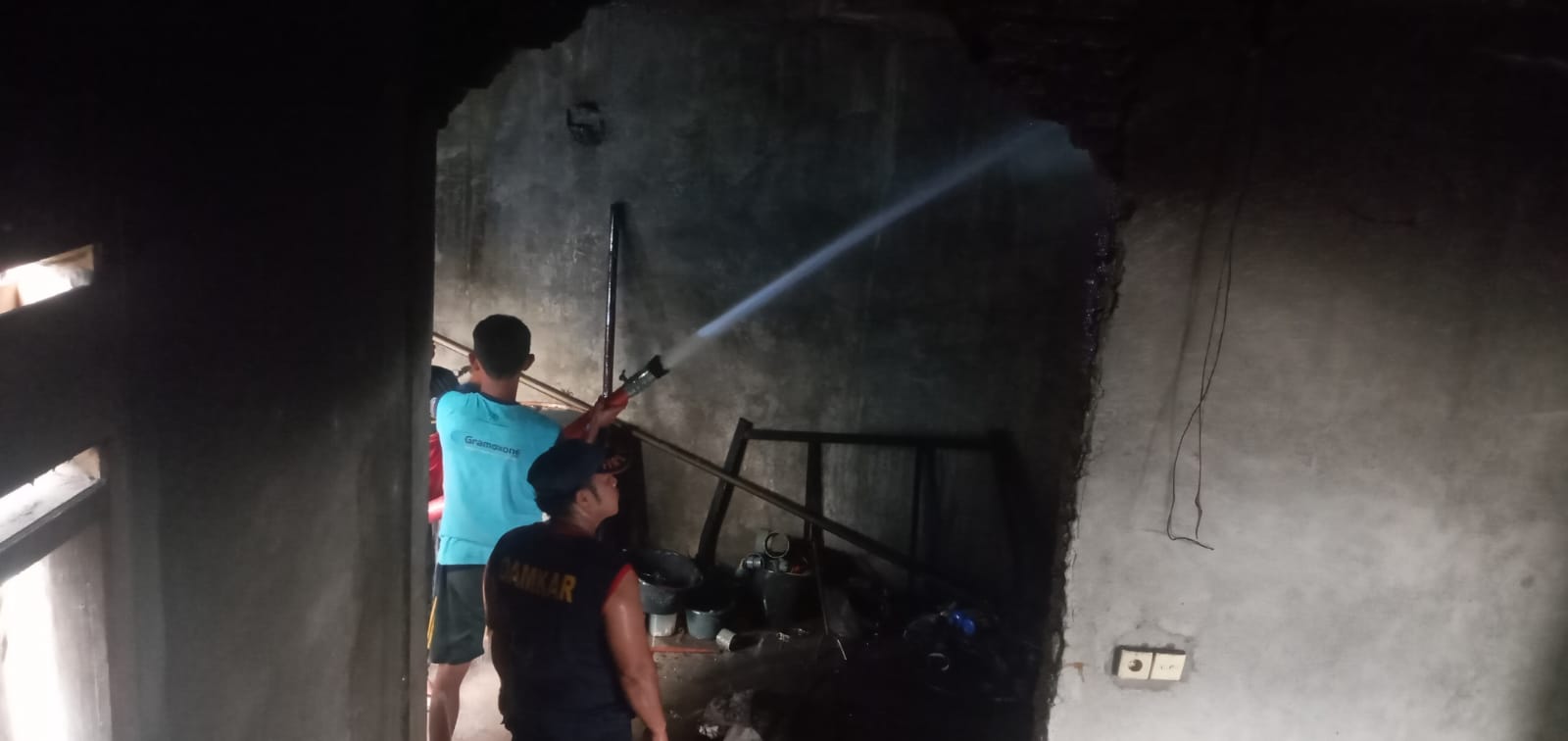 “Untuk memastikan peristiwa itu tidak meninggalkan jejak api, petugas Damkar juga masuk menyemprotkan air ke rumah agar memastikan api betul betul padam, karena sebelum disemprot air, dinding dinding rumah tersebut sangat panas sekali, sampai tangan kita saja tidak bisa menyentuhnya dikarenakan sangat panas,” sebutnya.