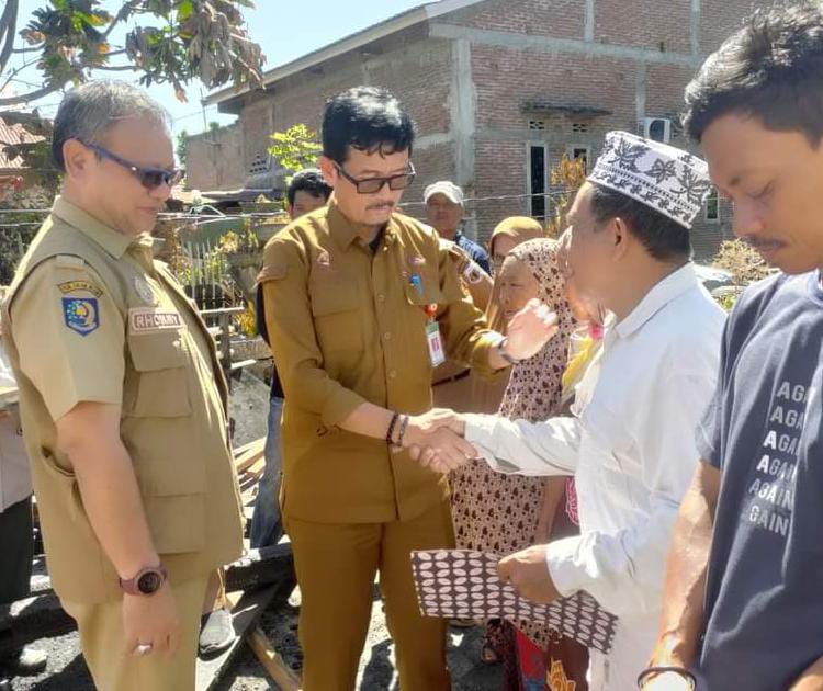 REAKSIMEDIA.COM | Pinrang – Sekretaris Daerah Kabupaten Pinrang sekaligus Kepala Badan Penanggulangan Bencana Daerah (Ex. Officio), A. Calo Kerrang, menyerahkan bantuan tunai kepada korban bencana kebakaran di Rubae, Kelurahan Bentengnge, Kecamatan Watang Sawitto, Senin (29/7).