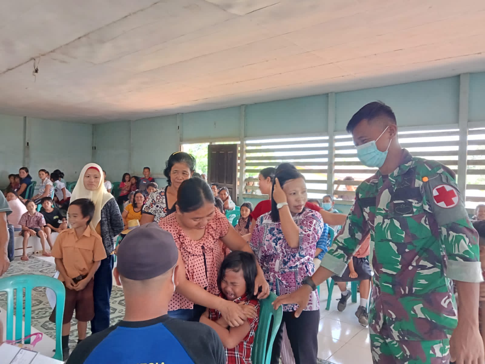 REAKSIMEDIA.COM | Muakan Petinggi – Anggota Satgas Pamtas RI-Malaysia Yonif 144/JY gelar Vaksinasi Anak SDN 08 bersama Nakes Puskesmas di desa Muakan Petinggi Kecamatan Ketungau Hulu Kabupaten Sintang Kalbar.