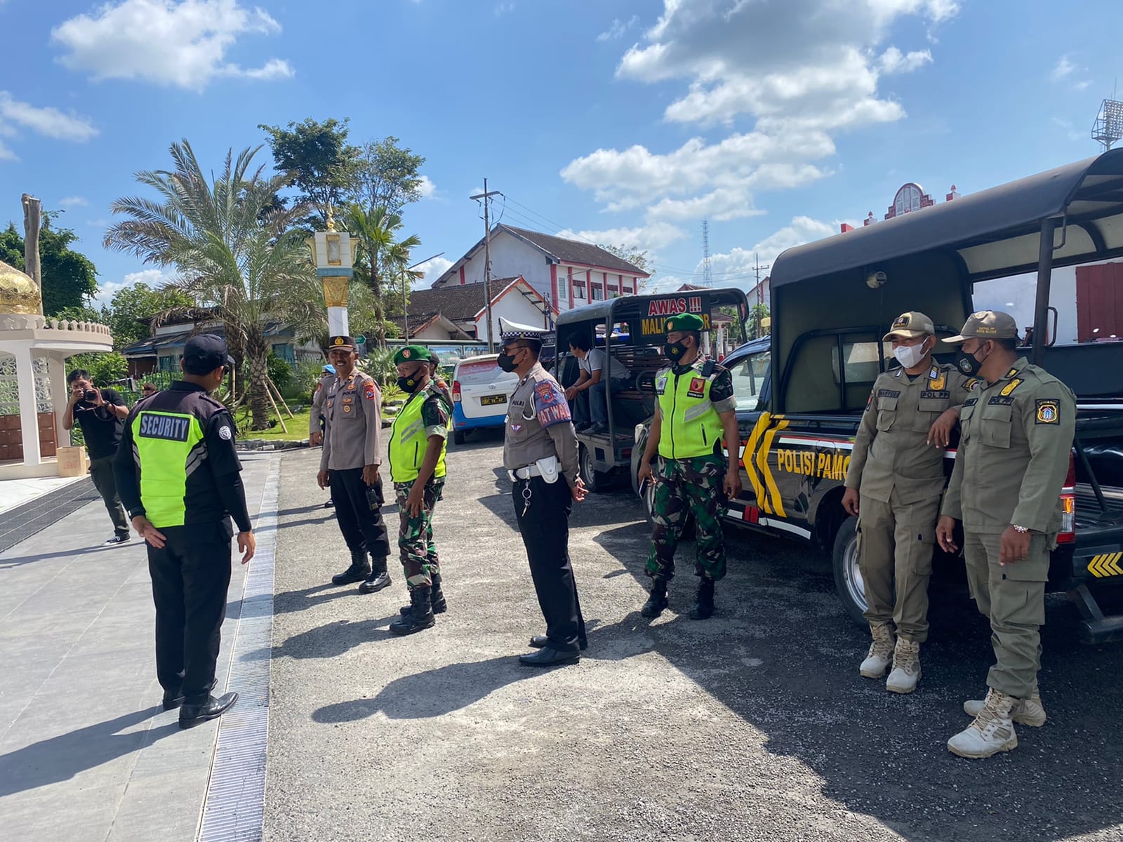 Selain melaksanakan patroli, petugas gabungan tidak lupa juga memberikan himbauan kepada warga masyarakat, agar selalu waspada dan berhati-hati saat melaksanakan aktifitas di tempat tempat keramaian.