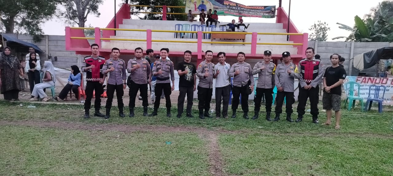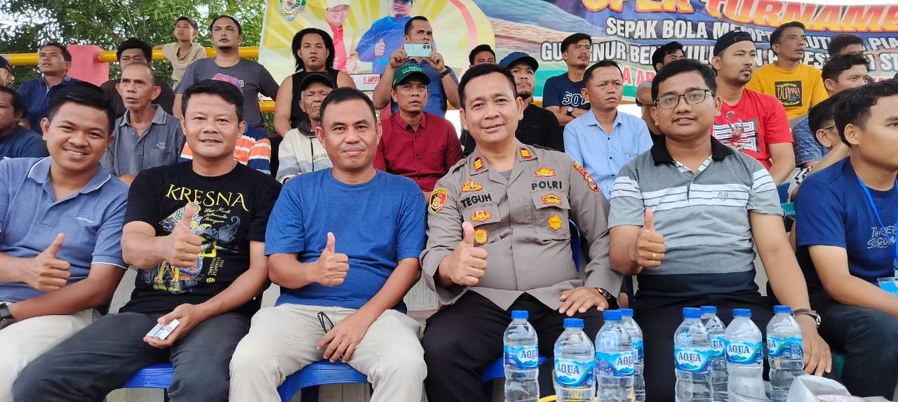 Terlihat Kapolsek Lubuk Pinang AKP Teguh Budiyanto, SE bersama Personil Polsek Lubuk Pinang dan personel patroli Sabhara Polres Mukomuko melaksanakan Pengamanan Turnamen Sepak Bola di Lapangan Bumi Sakti Desa Arah Tiga.