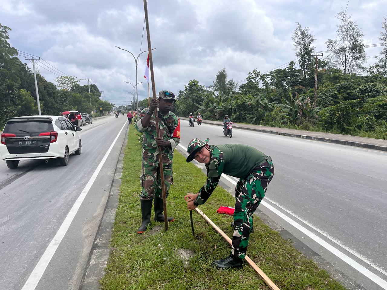 Sambut Bulan Kemerdekaan, Kodim 1710/Mimika Pasang Bendera Merah Putih Di Sepanjang Jalan