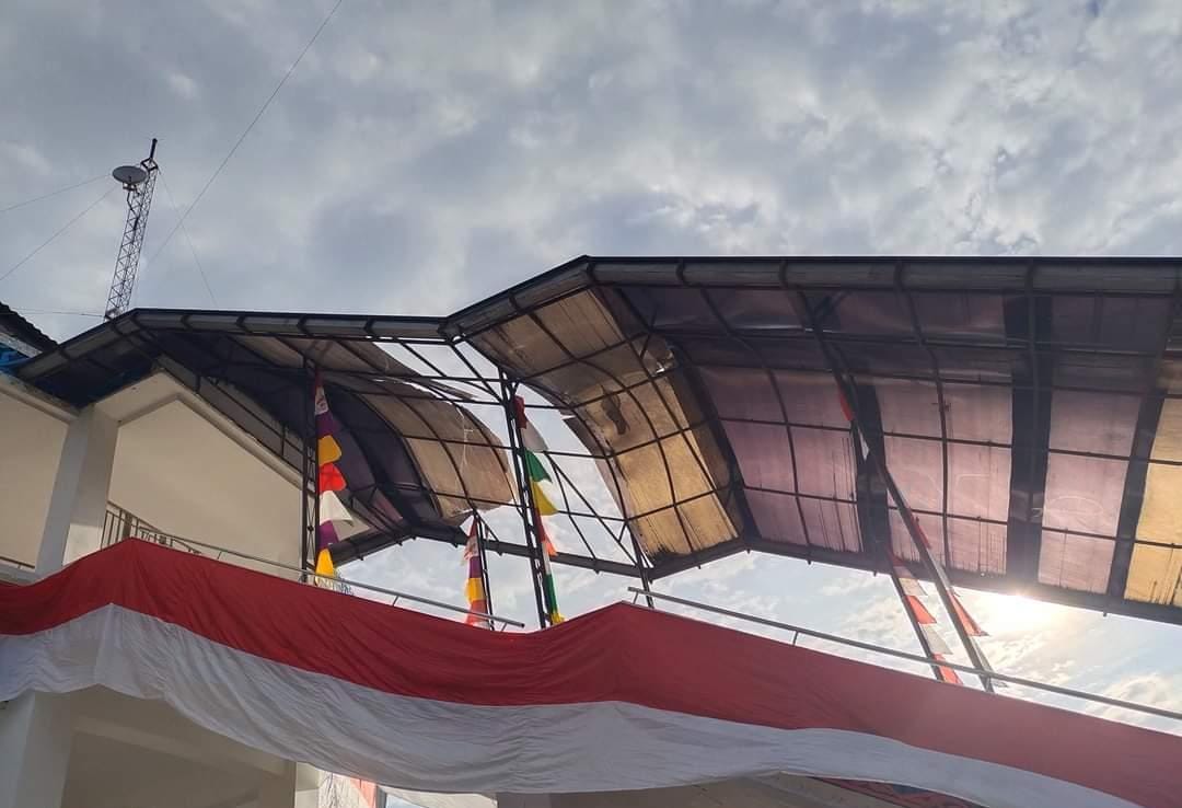 Pantauan REAKSI MEDIA, ini memang butuh perbaikan, miris melihat Bendera Merah Putih berkibar, tapi atapnya bolong.