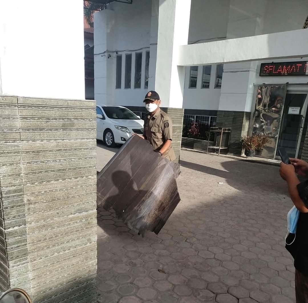 REAKSIMEDIA.COM | Kabanjahe, Karo – Atap menuju Ruang Rapat Kantor DPRD Kabupaten Karo tepatnya dibawah tangga, terlihat sudah jebol dan bolong, dan bila melihat keadaannya bisa saja yang disamping yang jebol bisa kemungkinan kembali jatuh.