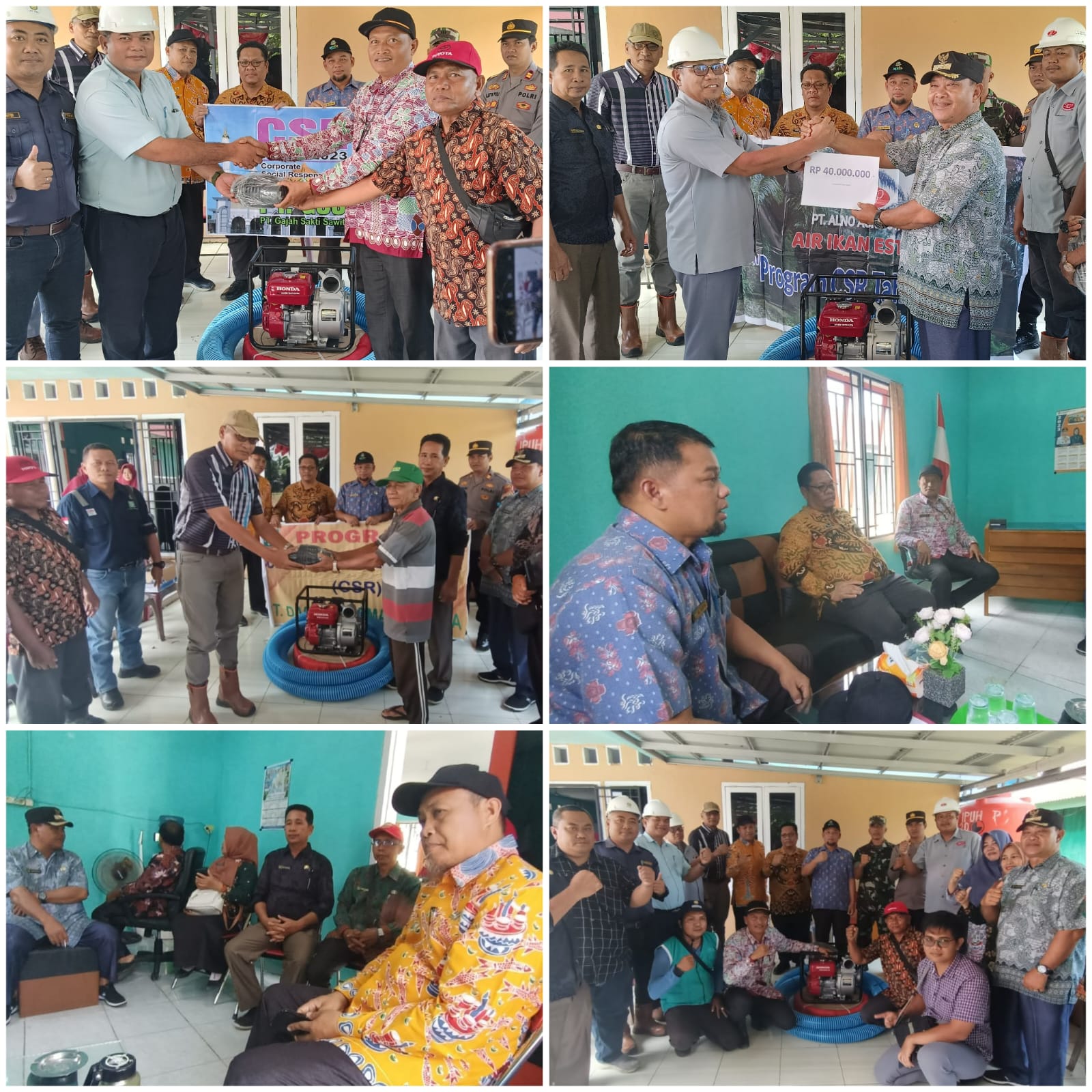 Diketahui bantuan yang diserahkan antara lain dua alat pompa air dari Provinsi Bengkulu, dua alat pompa air beserta selang dari PT. DDP dan GSS serta bantuan uang tunai 40 Juta rupiah dari PT Alno yang akan dibelikan selang serta kebutuhan BBM dalam penggunaan alat sedot air.