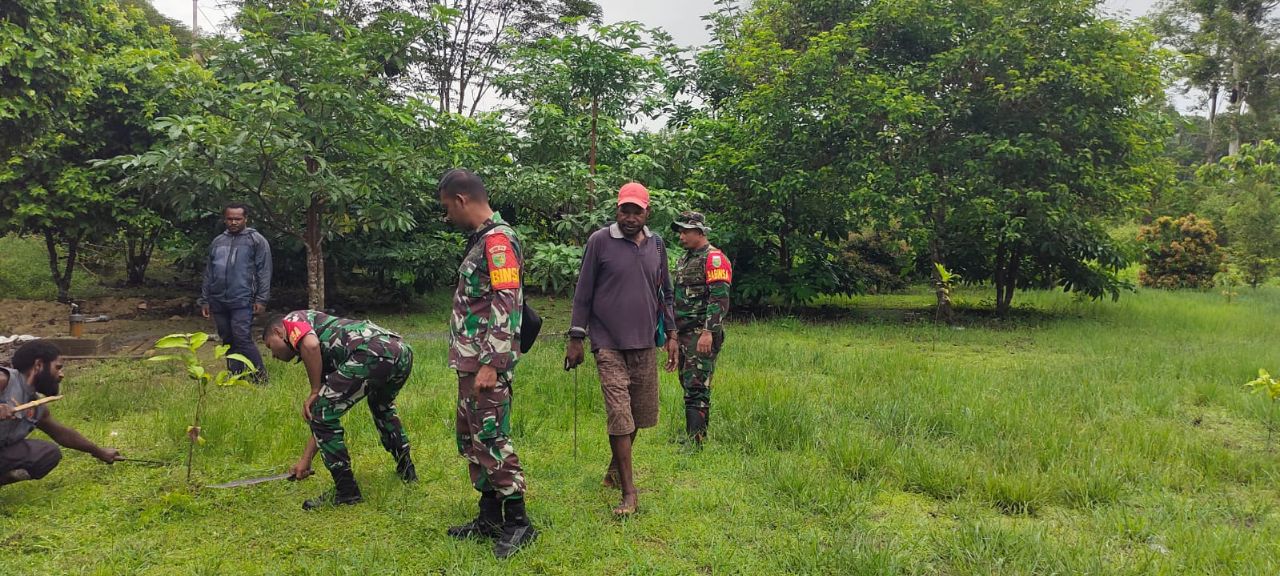 REAKSIMEDIA.COM | Timika – Babinsa Koramil 1710-02/Timika Serda La Zulhijah ajak masyarakat melaksanakan pembersihan rumput-rumput liar yang ada di sekitaran kebun tanaman Kelengkeng dan Matoa di Kp. Mandiri Jaya, Distrik Wania, Kab. Mimika, Sabtu (16/03/2024).