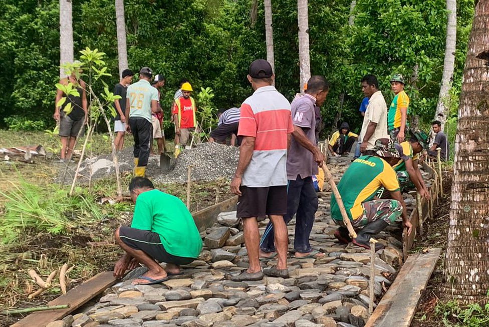REAKSIMEDIA.COM | Ambon – Guna meningkatkan perekonomian di sektor pertanian, Satgas Yonarmed 1 Kostrad bersama-sama masyarakat bergotong royong membangun jalan usaha tani yang dapat mempermudah akses petani untuk menuju kebun dan ladang serta dalam mengangkut hasil panen bertempat di Desa Tomalehu, Kec. Amalatu, Kab. Seram Bagian Barat (SBB), Maluku.