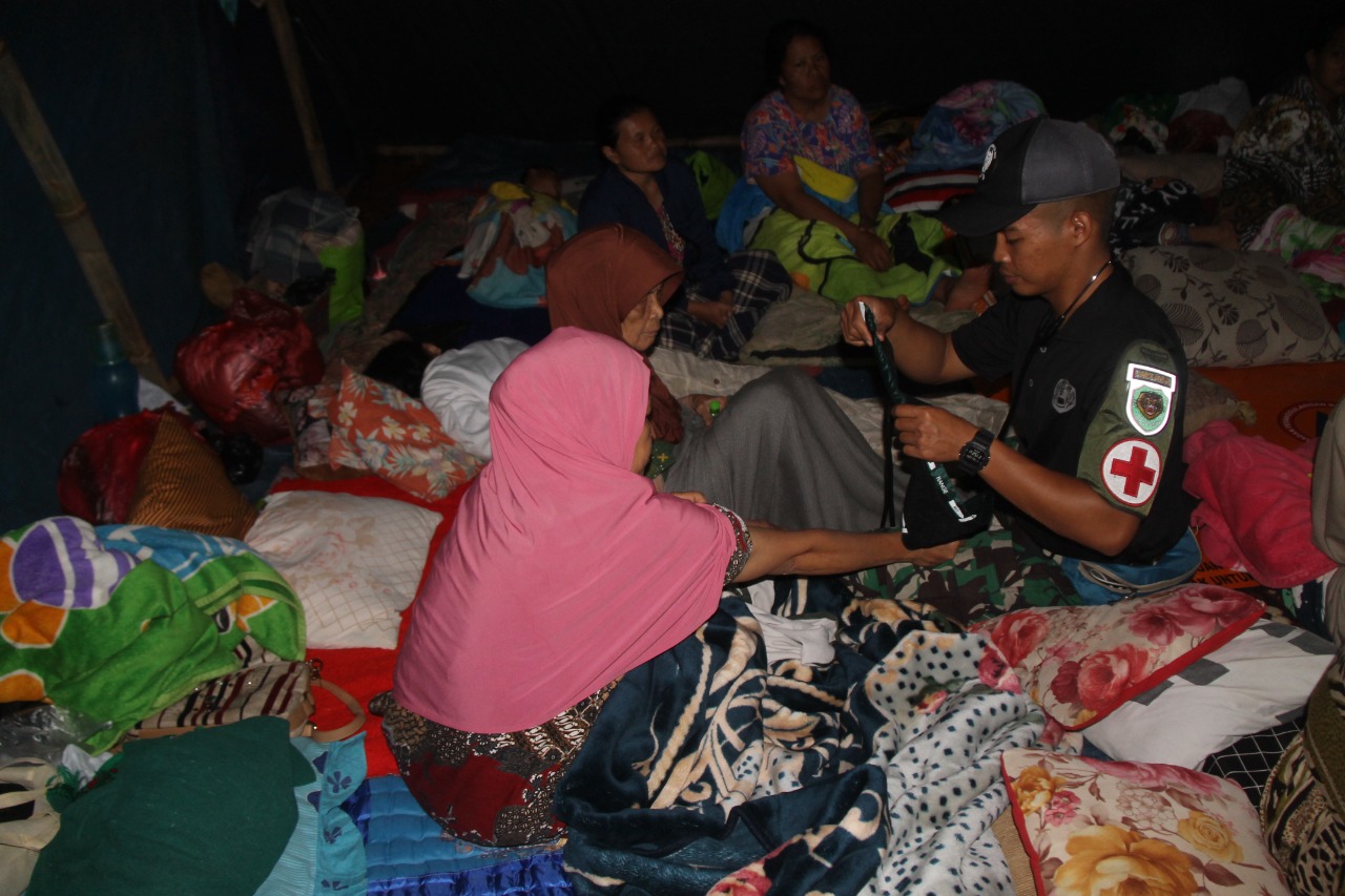 Anggota Yonif Raider 300/Bjw yang terdiri dari 20 orang personel dipimpin oleh Dokter Batalyon Ltt Ckm dr. Bayu Indra menyalurkan bantuan logistik dan melaksanakan pengobatan ke titik titik pengungsian yang ada di desa Ciharashas Cilaku pada malam hari dengan penerangan yang ada agar warga yang berada di titik titik pengungsian dapat dengan segera mendapatkan bantuan.