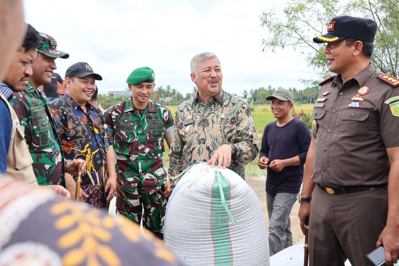 Di sela-sela kegiatan, Bupati Irwan juga menyampaikan rasa syukurnya atas hasil panen yang melimpah serta membaiknya harga gabah saat ini.