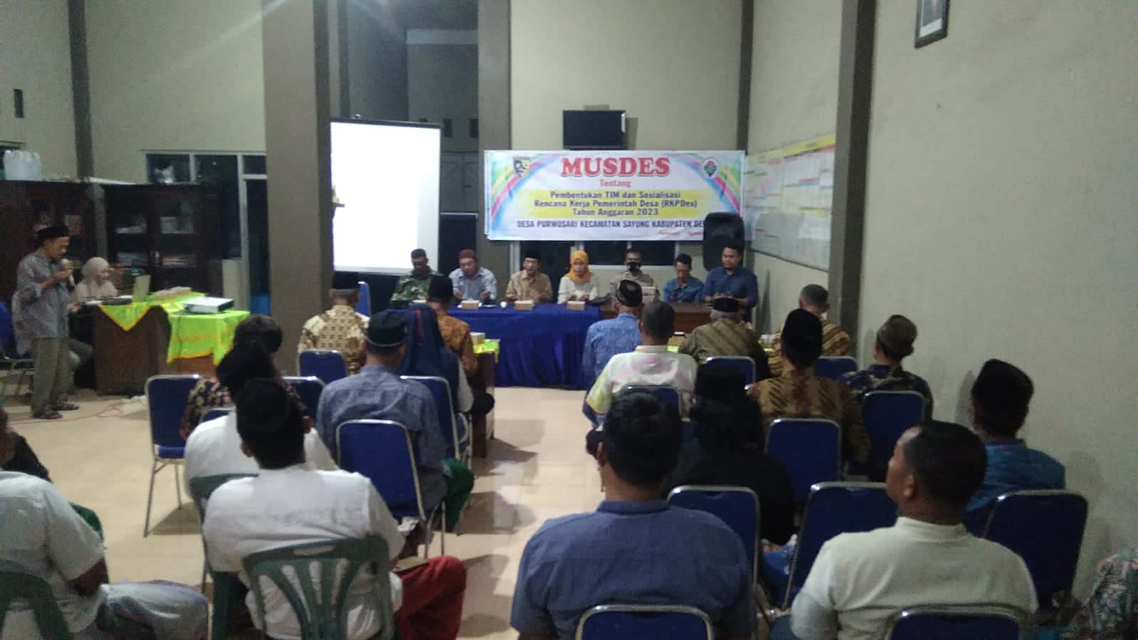 Pada acara Musdes Kali ini membahas tentang sebagian angaran Dana Desa yang akan digunakan untuk BUMDesa,dan diharapakan nanti agar BUMDesa bisa menigkatkan Kesejateran Masyarkat Desa Purwosari
