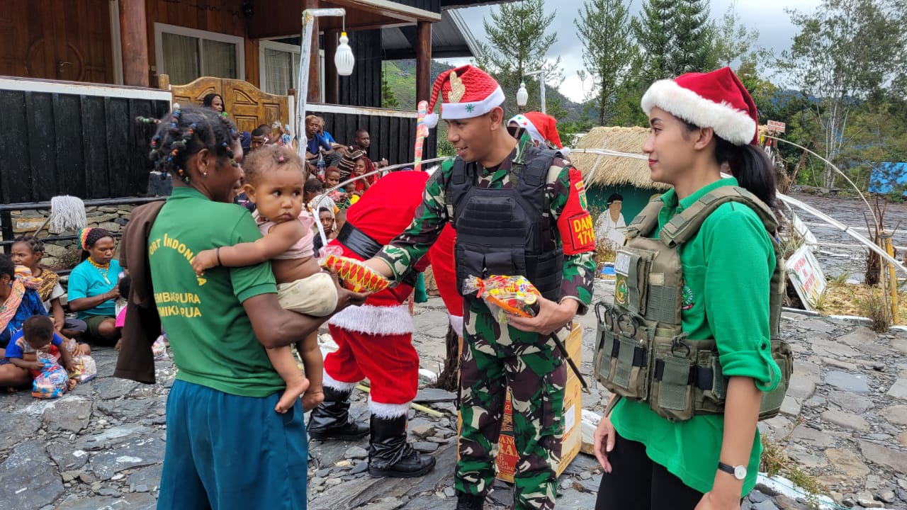 Kodim 1714/Puncak Jaya Bagikan 250 Bingkisan Natal Untuk Anak-Anak