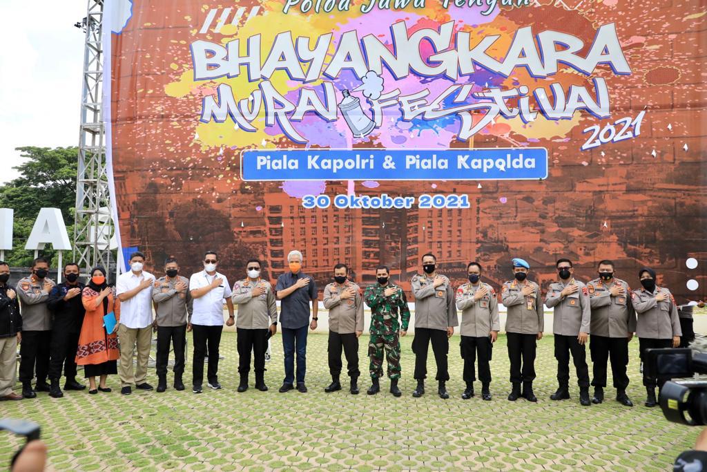 REAKSIMEDIA.COM | Semarang – Masyarakat diberikan kebebasan luas untuk menyampaikan aspirasi atau kritikan kepada institusi Polri, namun tetap dalam koridor serta didukung data. Media untuk menyampaikan pesan kritikan aspirasi bisa apa saja termasuk melalui gambar mural. Kapolda Jateng Irjen Pol Ahmad Luthfi mengungkapkan hal tersebut saat menghadiri pembukaan Bhayangkara Mural Festival di halaman Mapolda yang juga dihadiri Gubernur Jateng, para pejabat utama serta sejumlah pekerja media, Sabtu (30/10) pagi.
