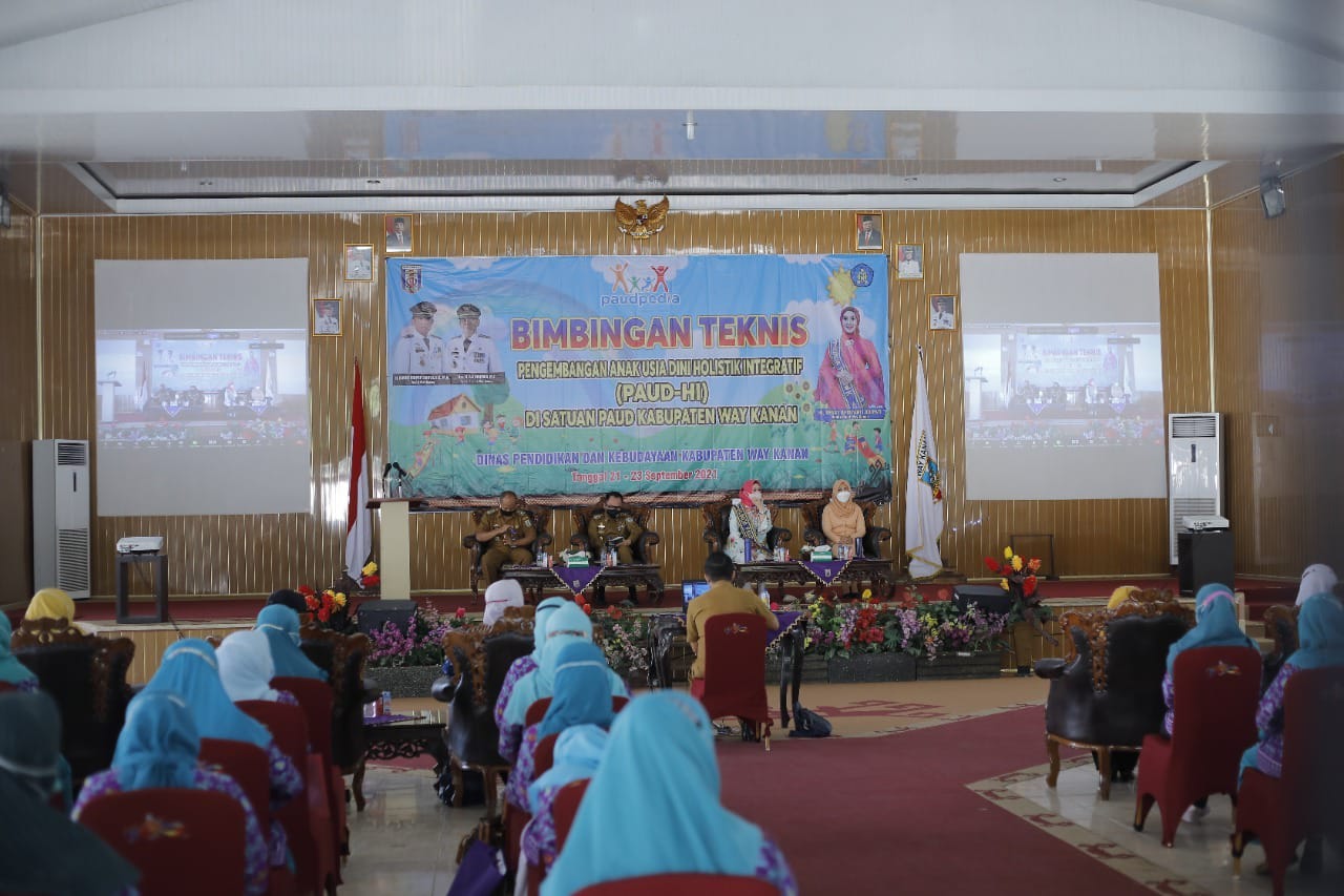 Di GSG Pemkab Way Kanan, Selasa (22/09/2021) yang di hadiri Bapak Direktur PAUD, Direktorat Jenderal Pendidikan Anak Usia Dini, Pendidikan Dasar, Pendidikan Menengah Kementerian Pendidikan Kebudayaan, Riset Dan Teknologi Republik Indonesia, Bupati Way Kanan, Bapak H. Raden Adipati Surya, S.H., M.M., Kepala Dinas Pendidikan Dan Kebudayaan Kabupaten Way Kanan dan Ketua POKJA PAUD,