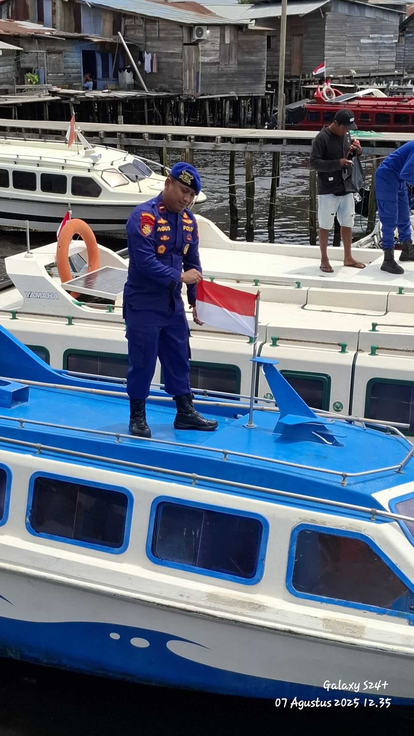 Semangat Merah Putih di Perairan Tobelo : SATPOLAIRUD Polres Halut Bagikan Bendera dan Sosialisasi Keselamatan Laut