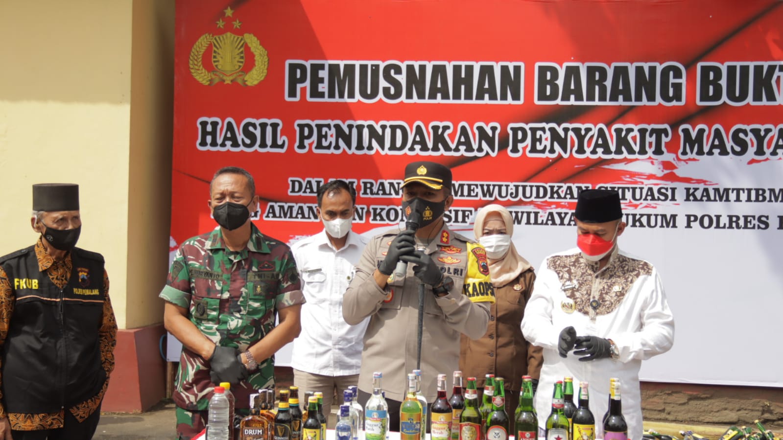 Kapolres Pemalang mengatakan, dalam kegiatan rutin yang ditingkatkan selama 2 minggu sebelum perayaan hari raya Idul Fitri, Polres Pemalang telah mengamankan sebanyak kurang lebih 1.500 botol minuman beralkohol dari berbagai merk .