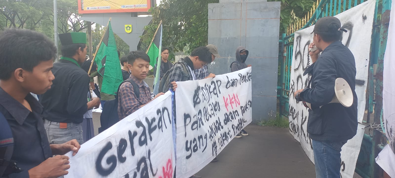 REAKSIMEDIA.COM | Kabupaten Bogor – Himpunan Mahasiswa Islam (HMI) Cabang Bogor melakukan aksi demo yang kedua di depan kantor Bupati Kabupaten Bogor, Kejari dan Dinas PUPR, Rabu (17/5/2023).