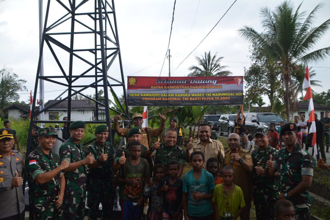 Kedatangan Kaskostrad disambut dengan tarian adat oleh masyarakat Kampung Wania. Kaskostrad Mayjen TNI Muhammad Saleh Mustafa beserta rombongan meninjau fasilitas air bersih Program TNI AD Manunggal Air Tahun 2023 dalam rangka Wasev TNI Manunggal Air Program Nasional Bakti Papua Tahun 2023. Titik air bersih berlokasi di Kampung Nawaripi, Distrik Wania, Kab. Mimika.