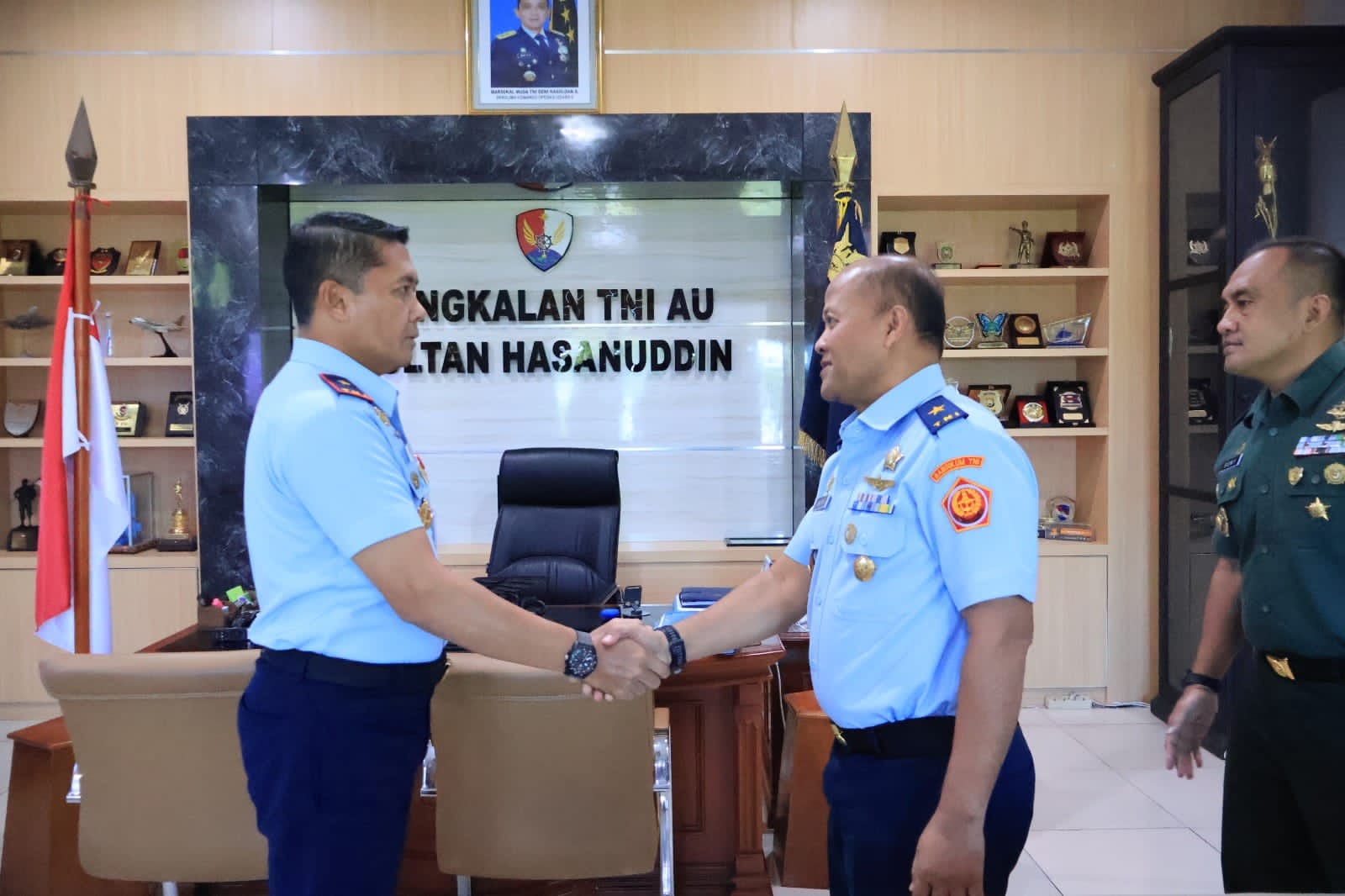 REAKSIMEDIA.COM | Makassar – Komandan Lanud (Danlanud) Sultan Hasanuddin, Marsma TNI Arifaini Nur Dwiyanto, M.Han., menerima kunjungan Kepala Oditurat Militer Tinggi IV Makassar (Kaotmilti IV Makassar) Marsma TNI Wahyu Priyo Budi, S.H., M.H., didampingi Kepala Pemasyarakatan Militer (Kamasmil IV Makassar) Kolonel Cpm Sony Yusdarmoko, S.H., M.Si. bertempat di Markas Komando (Mako) Lanud Sultan Hasanuddin, Makassar, Kamis (5/6/2025).