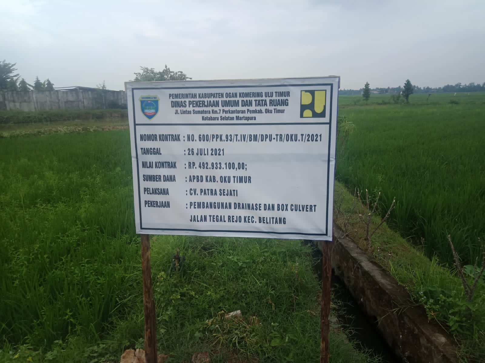 Atas laporan masyarakat yang kita terima, jadi kita menerima laporan dari masyarakat bahwa adanya kegitan pembangunan Drainase dan Box Culvert yang di Desa Tegal Rejo Kecamatan Belitang yang dilaksanakan 26 Juli 2021 sumber dana Dari APBD Kabupaten Oku Timur pelaksana CV. PATRA SEJATI dengan Nilai Kontrak Rp. 492.933.100,00 namun sayang sekali dana yang dikucurkan Pemerintah Pusat baik Provinsi melalui Dinas Pekerjaan Umum dan Tata Ruang Kabupaten Oku Timur diduga kerjakan asal jadi.