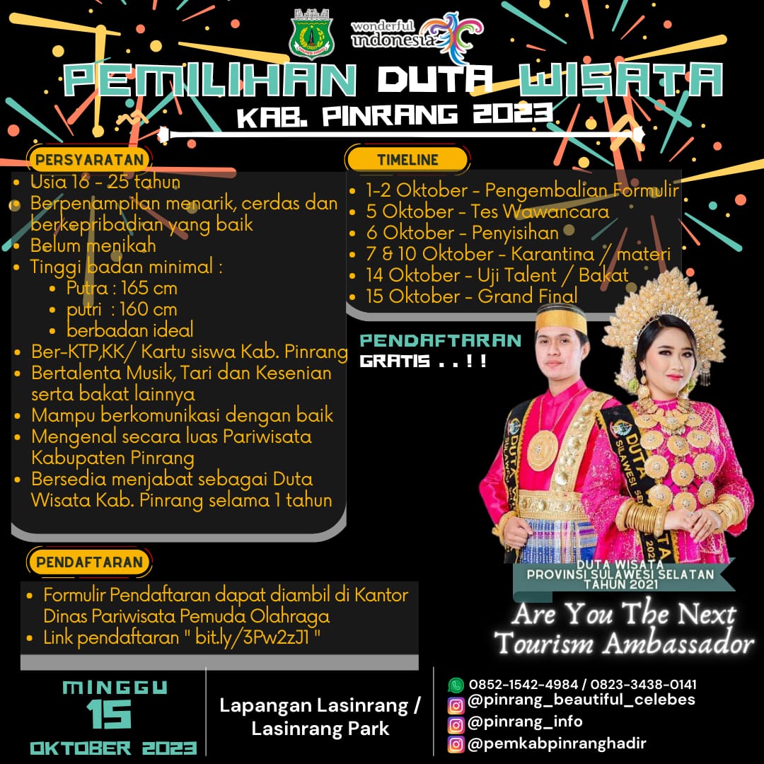 REAKSIMEDIA.COM | Pinrang – Pemerintah Kabupaten Pinrang melalui Dinas Pariwisata,Pemuda dan Olahraga (Paspor) akan menggelar sebuah kegiatan untuk menarik para wisatawan untuk berkunjung ke Pinrang.