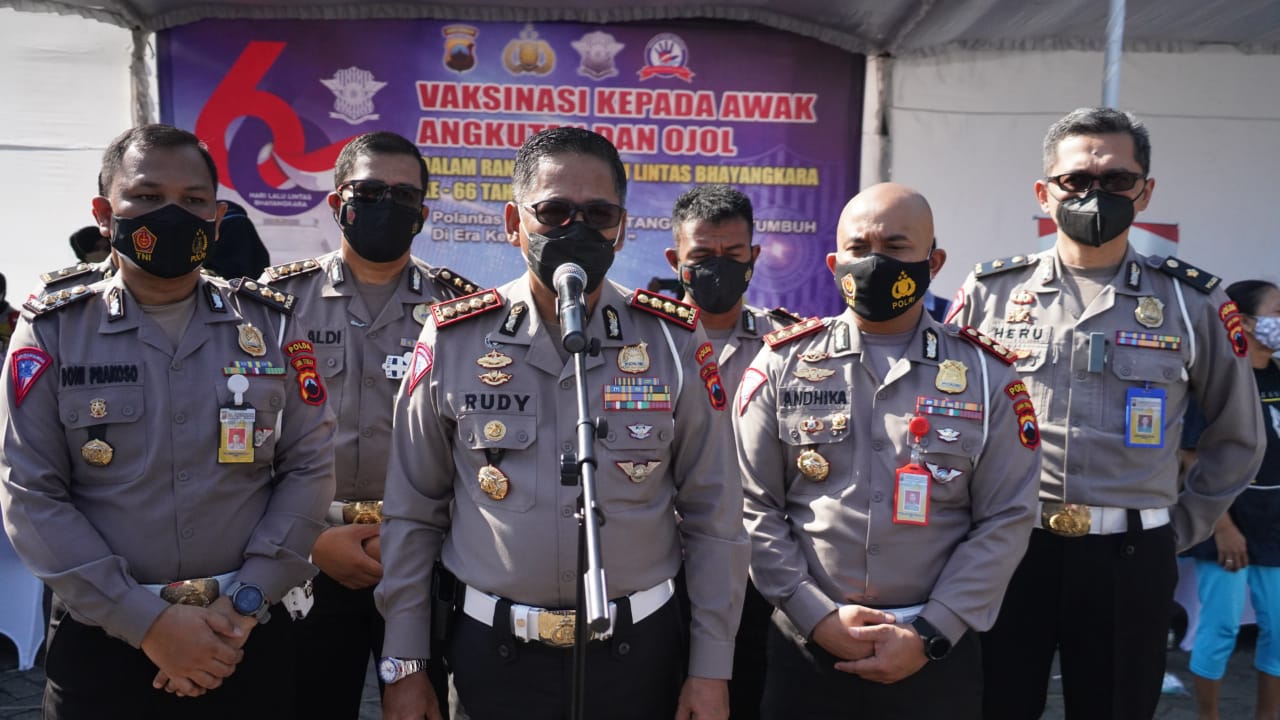 REAKSIMEDIA.COM | Semarang – Dalam rangka menyambut HUT Lantas Ke 66, Direktorat Lalu Lintas Polda Jateng menggelar Vaksinasi untuk pengemudi angkutan umum dan ojek Olnine di kota Semarang, acara ini di gelar di taman Raden Saleh, Semarang, Sabtu Pagi, (18/9/21).