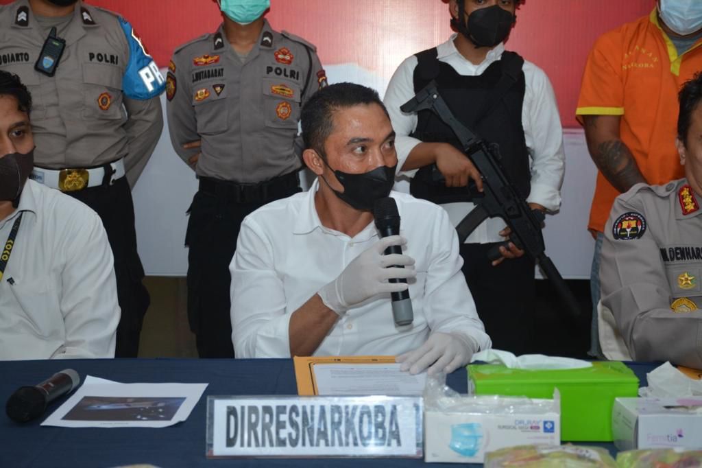 “hasil penyelidikan, pelaku mengatakan mendapat pesanan ke 2 (dua) wilayah yaitu Tembilahan-Riau dan Palembang. Pelaku merupakan pemain baru dan didampingi oleh Tekong yang saat ini masih DPO.”- pungkas Dirresnarkoba Polda Kepri Kombespol Ahmad David, S.I.K