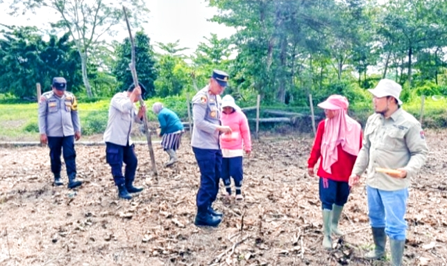 Dalam kegiatan tersebut, Polsek V Koto bersama Pemdes Lubuk Cabau melakukan penanaman jagung seluas 1 hektar di lahan BWSS VII Kecamatan V Koto