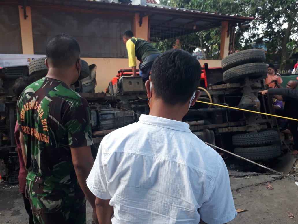 Menurut Pelda M. Ihyaudin Anggota Koramil 01/Purbalingga yang turut membantu evakuasi karena TKP berada tidak jauh dari Koramil 01/Purbalingga menuturkan, kronologi kejadian bermula saat dump truk bernopol H 1925 CR yang dikemudikan oleh PS (41) warga RT 03/05 Desa Bajong, Kecamatan Bukateja, Kabupaten Purbalingga, sedang bermanuver hendak bongkar muatan di dekat saluran irigasi yang menjadi TKP.