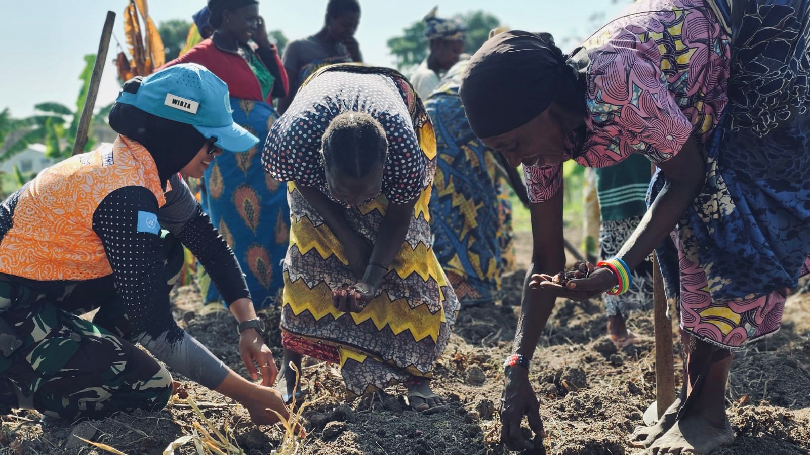 Dalam kegiatan ini, Engagement Platoon yang dipimpin oleh Serka Tiara turut memberikan penyuluhan tentang ketahanan pangan kepada warga Desa Bogoro dengan memberikan bibit bawang dan melaksanakan penanaman bersama beberapa warga yang hadir dalam kegiatan tersebut.