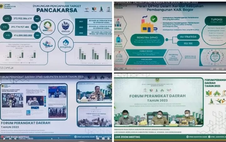 Forum dilaksanakan secara Meeting Virtual, bertempat di ruang Rapat Utama DPMD Kabupaten Bogor, Selasa (22/2/2022), dan diikuti peserta hadir dengan tatap muka maupun secara daring. Selain itu, forum diikuti peserta dari perwakilan Perangkat Daerah, Forum Komunikasi Pimpinan Daerah (Forkopimda), Instansi Vertikal, Sub