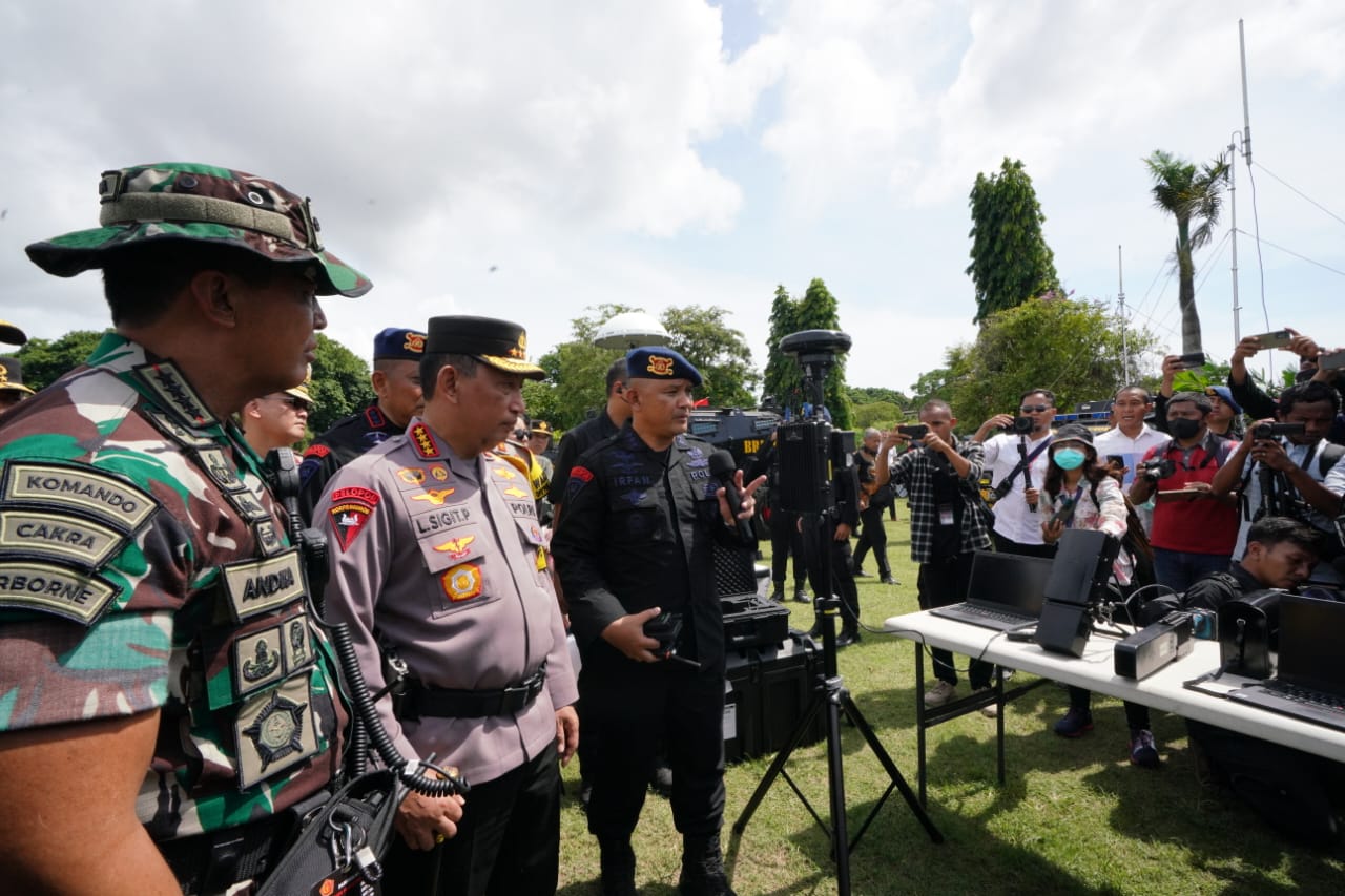 “Kita laksanakan pengecekan langsung berbagai macam peralatan yang kita miliki sehingga masing-masing tentunya memiliki kesiapan terkait dengan pelaksanaan tugasnya, mulai dari kondisi normal sampai dengan kondisi kontijensi, mulai dari pengamanan rolakir sampai apabila ada permasalahan baik unjuk rasa, ada ancaman bom dan juga bagaimana kita melakukan evakuasi serta kesiapan sarana dan prasarana lainnya apabila diperlukan,” kata Kapolri di Lapangan Niti Mandala Renon, Denpasar, Senin (7/11/2022).