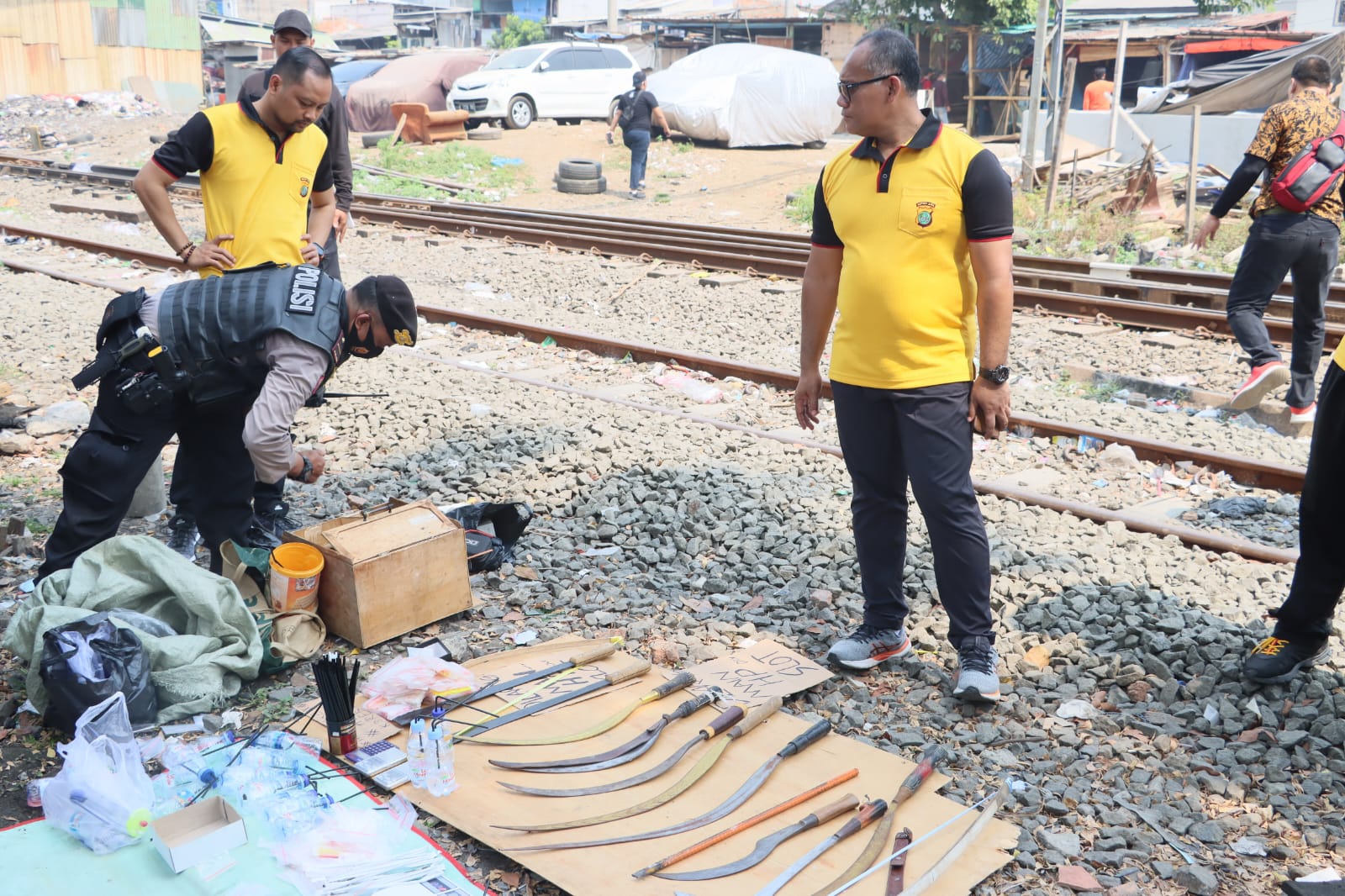 Kombes Gidion mengatakan, kegiatan (razia) ini juga dalam rangka menertibkan belasan gubuk liar atau warga menyebutnya sebagai ‘Apotek’ di bantaran rel Kampung Bahari.