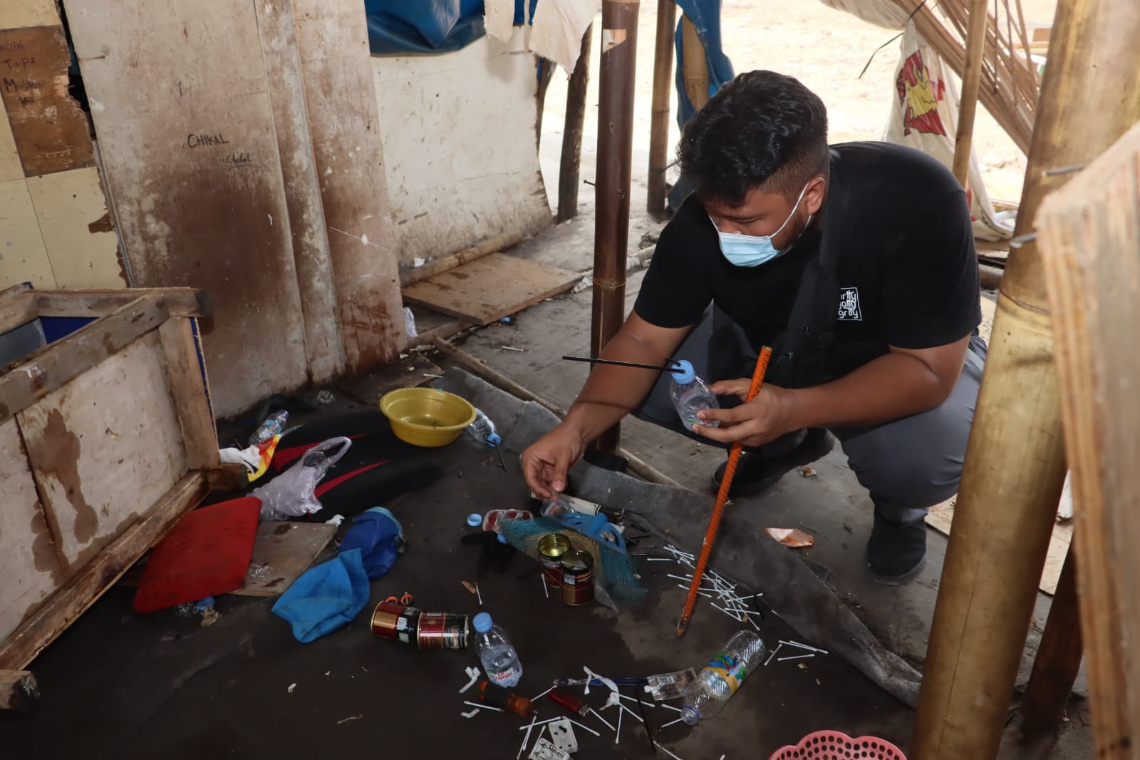 Di lokasi itu juga personel gabungan melakukan pembongkaran belasan gubuk yang dipakai oleh para pengguna untuk memakai narkoba.