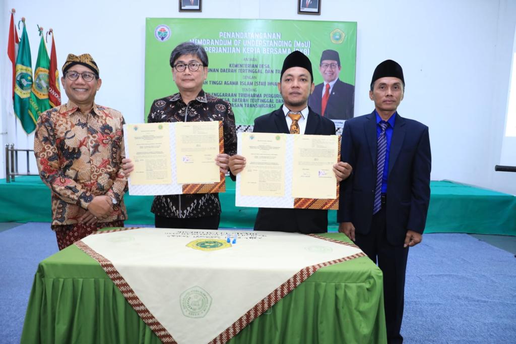 Kesepakatan bersama itu ditandatangani dalam Memorandum of Understanding (MoU) dan Perjanjian Kerja Bersama (PKB) antara Kemendes PDTT dengan Sekolah Tinggi Agama Islam (STAI) Ihyaul Ulum Gresik tentang penyelenggaraan Tri Dharma Perguruan Tinggi di desa, daerah tertinggal dan kawasan transmigrasi di Kampus STAI Ihyaul Ulum Gresik, Kamis (30/11/2023).