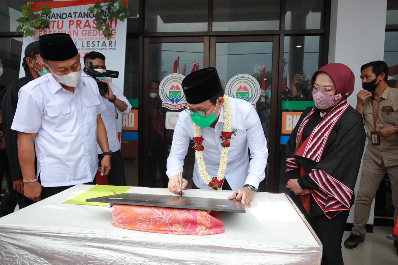 REAKSIMEDIA.COM | Ponorogo – Menteri Desa, Pembangunan Daerah Tertinggal dan Transmigrasi Abdul Halim Iskandar meresmikan gedung kantor Badan Usaha Milik Desa Bersama (BUMDesma) Badegan Lestari Kecamatan Badegan, Ponorogo, Jawa Timur pada Jumat (24/9).