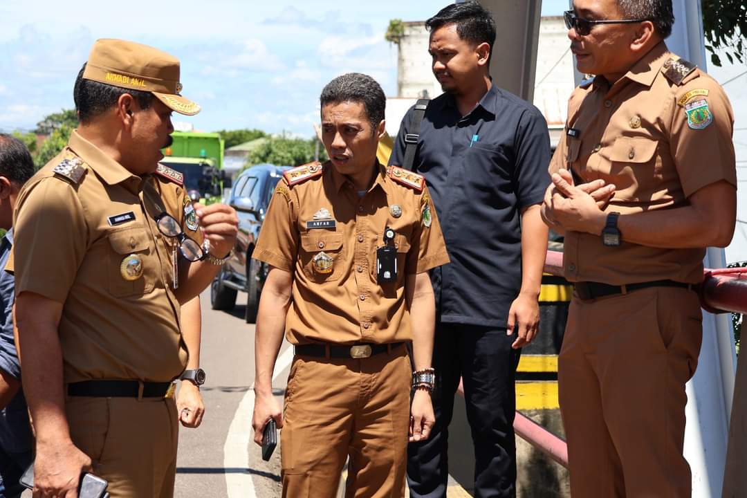 REAKSIMEDIA.COM | Pinrang – Kepala Bappedalitbangda Kabupaten Pinrang H.A.Fahruddin Renteng dampingi Pj.Bupati Pinrang H.Ahmadi Akil,SE,MM berkesempatan meninjau kondisi aliran sungai tepatnya dibawah jembatan Kariango yang dipenuhi material sampah yang berasal dari hulu sungai.