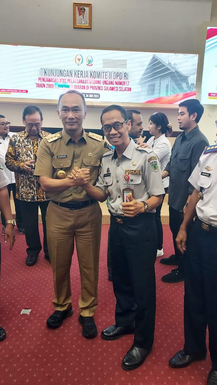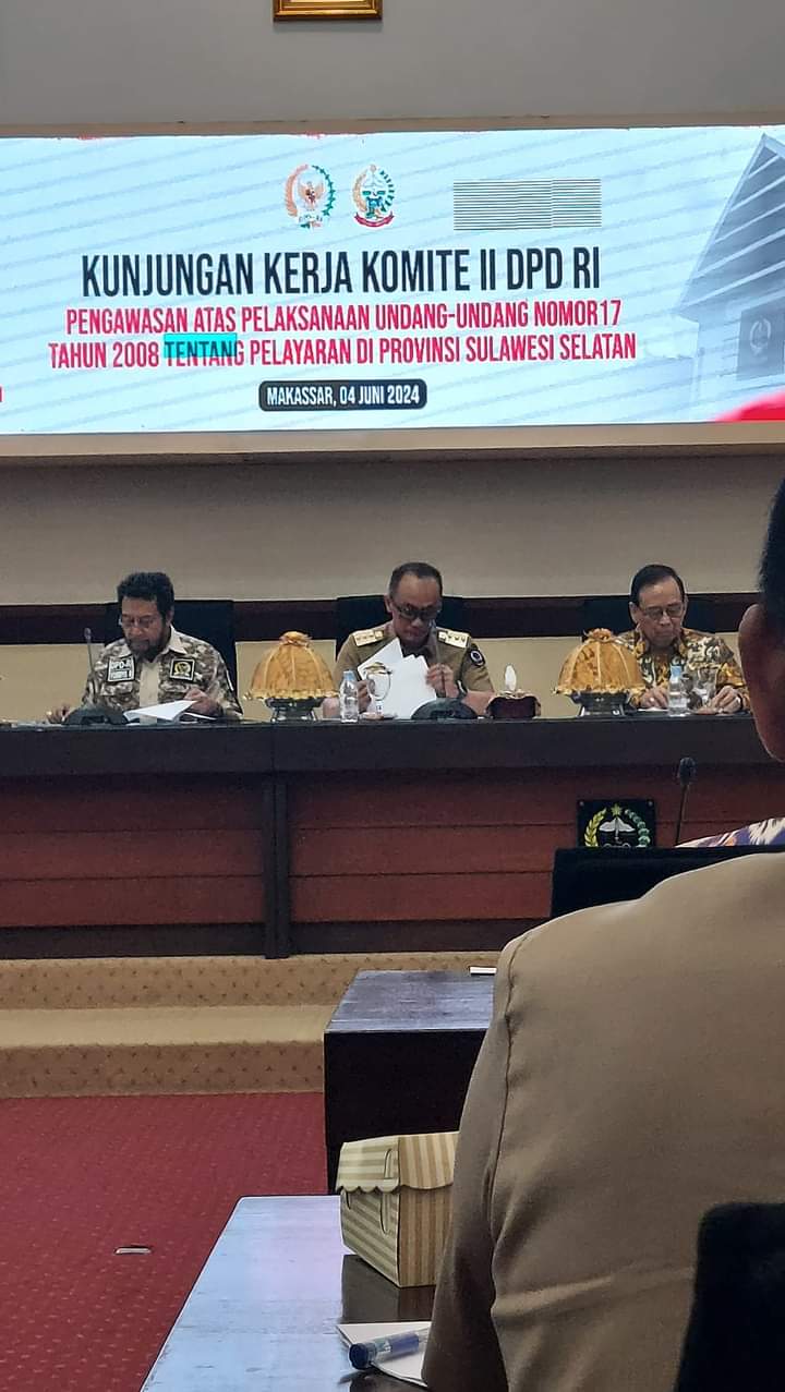 REAKSIMEDIA.COM | Pinrang – Kepala Dinas Perhubungan dan Pertanahan kabupaten Pinrang H. Bahtiar, Sp.Msi menghadiri langsung Kunjungan Kerja Komite II DPD RI melakukan ke Sulawesi Selatan dalam rangka meminta masukan terkait rencana revisi undang-undang nomor 17 tahun 2008 terkait pelayaran.
