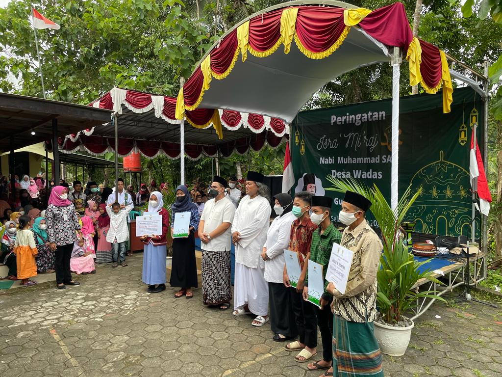 REAKSIMEDIA.COM | Purworejo – Suasana balai desa Wadas, Kecamatan Bener, Kabupaten Purworejo mendadak marak ketika digelar pengajian dalam rangka memperingati Isra’ Mi’raj Nabi Besar Muhammad SAW pada Selasa (1/3/2022) sore.