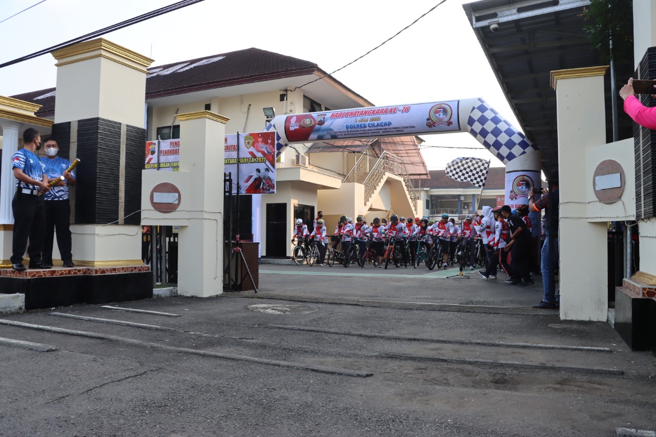 REAKSIMEDIA.COM | Cilacap – Dalam rangka memperingati Hari Bhayangkara ke-76 sekaligus untuk memupuk sinergitas lintas sektoral dan mempererat kemitraan dengan masyarakat. Polres Cilacap Polda Jawa Tengah menggelar olahraga bersepeda bersama (Fun bike) Minggu, (19/06/2022). Adapun Start di awali dari Mapolres Cilacap dan Finish di PLTU Karangkandri Kab Cilacap.