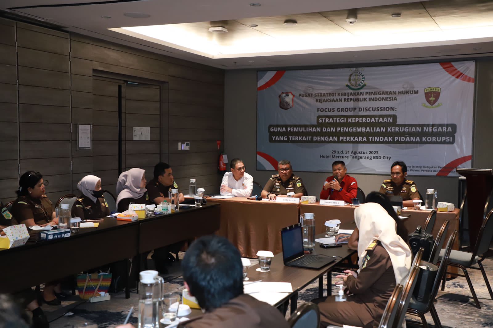 Focus Group Discussion (FGD) Pusat Strategi Kebijakan Penegakan Hukum dengan tema “Strategi Keperdataan Guna Keberhasilan Pemulihan dan Pengembalian Kerugian Negara dalam Perspektif Peraturan Kejaksaan RI Nomor 7 Tahun 2021” hari pertama telah berjalan dengan baik dan lancar. (K.3.3.1)
