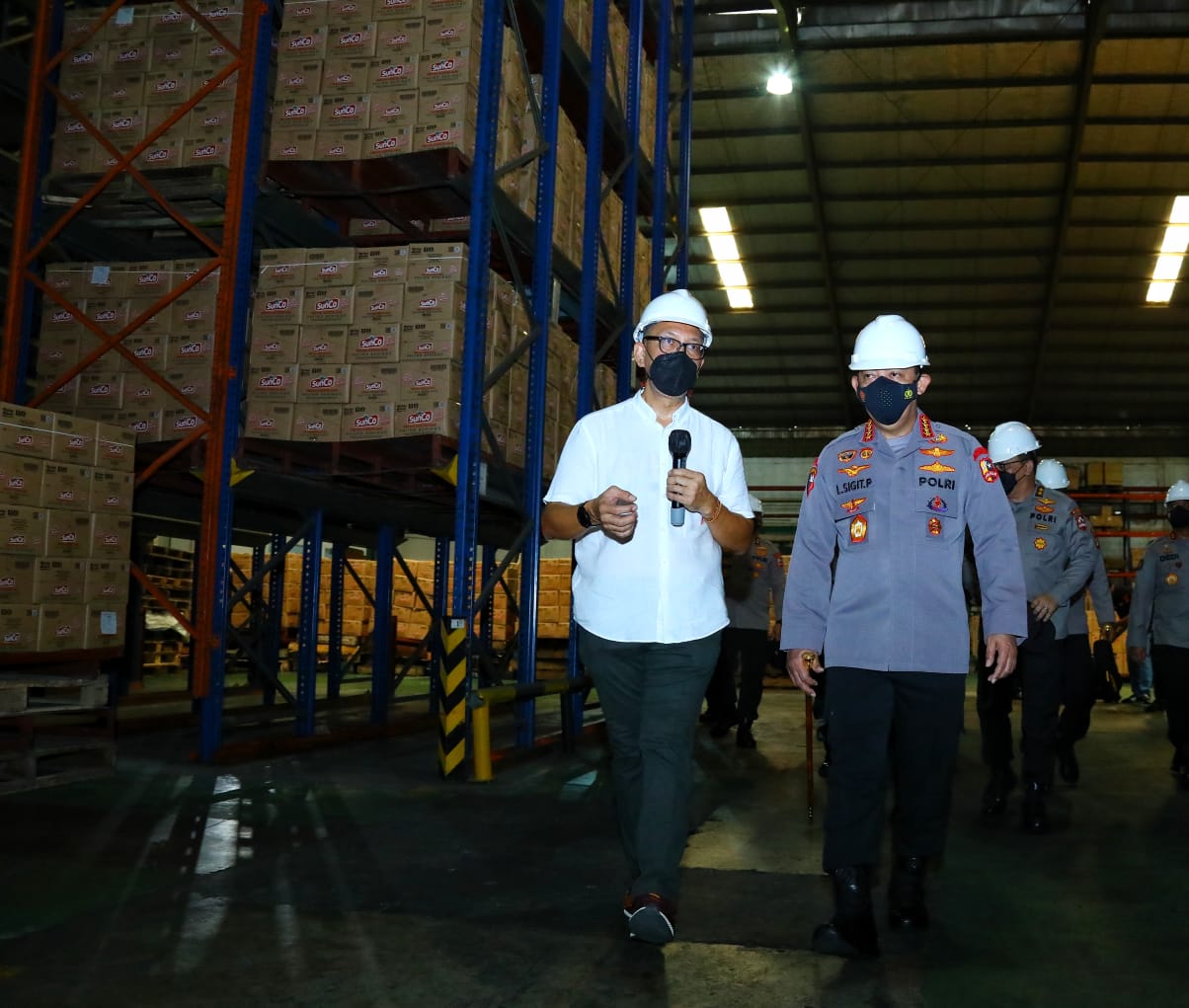REAKSIMEDIA.COM | Bekasi – Kapolri Jenderal Listyo Sigit Prabowo meninjau langsung pabrik minyak goreng PT Mikie Oleo Nabati Industri Bekasi, Jawa Barat, Rabu (16/3/2022). Dalam pengecekannya, Kapolri memastikan proses produksi hingga pendistribusian ke pasar untuk memenuhi kebutuhan masyarakat.