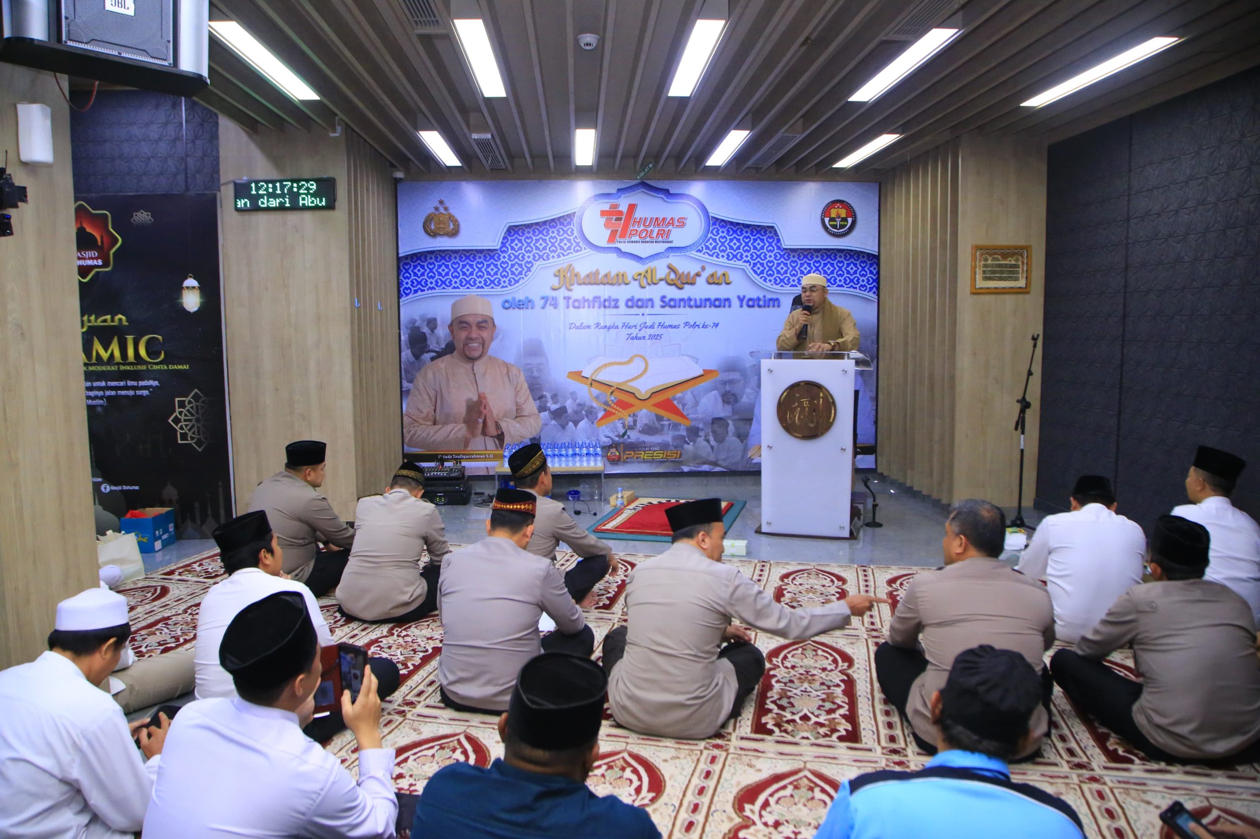 REAKSIMEDIA.COM | Jakarta – Divisi Humas Polri menggelar khataman Al-Qur’an menjelang peringatan hari jadi ke-74. Khataman ini melibatkan 74 orang Tahfiz Quran dari sejumlah pesantren beserta personel anggota Divhumas Polri.