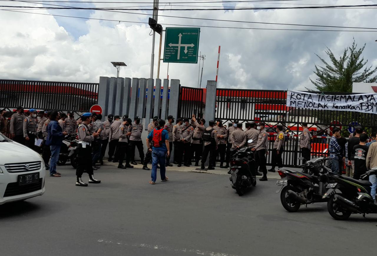 REAKSIMEDIA.COM | Tasikmalaya – Polres Tasikmalaya Kota Polda Jabar menjelaskan pertimbangan harus memadamkan api saat aksi demo mahasiswa di depan pintu gerbang Depo Pertamina Tasikmalaya yang terjadi pada Rabu (6/4/2022).