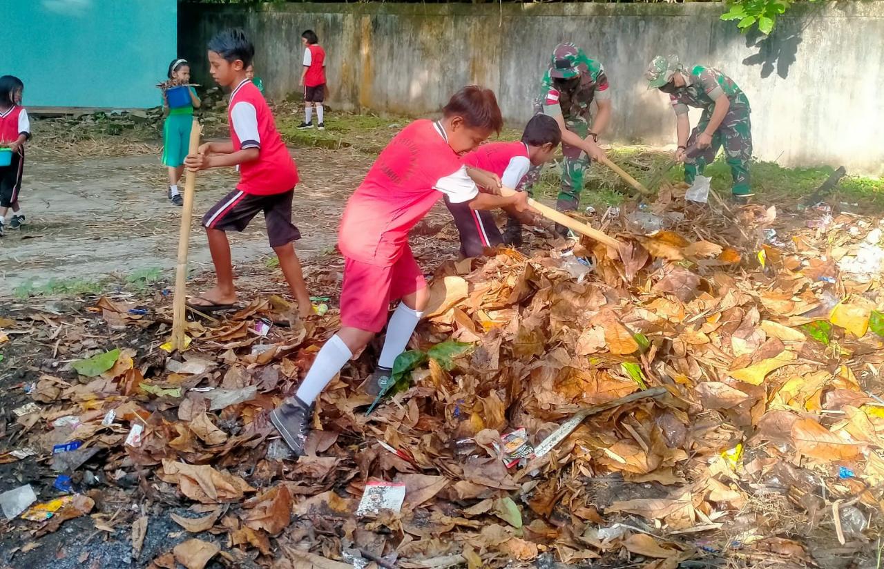 Selain Jadi Gadik, Anggota Satgas Kodim Maluku Yonarhanud 11/WBY Juga Tanamkan Budaya Hidup Sehat di SDN Iha
