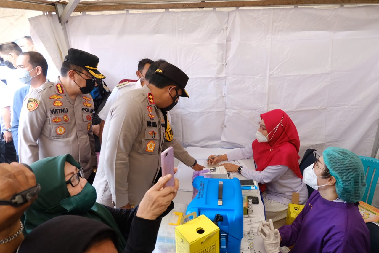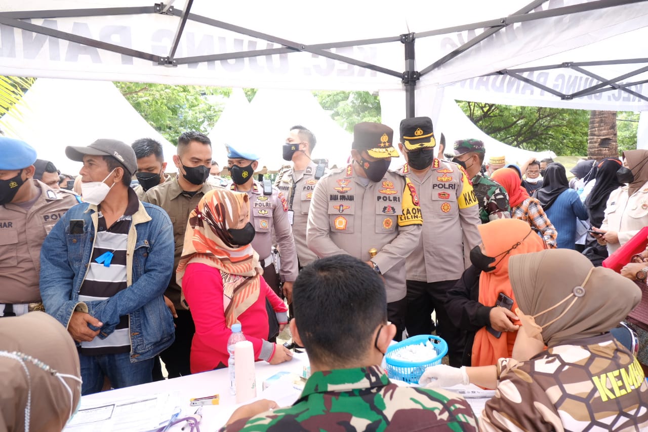 REAKSIMEDIA.COM | Makassar – Kapolda Sulsel Irjen Pol. Drs. Nana Sudjana AS., M.M., menghadiri pelaksanaan Giat Vaksinasi Massal yang diadakan Forkopimda Kota Makassar di Anjungan Pantai Losari, Rabu (29/12/2021).