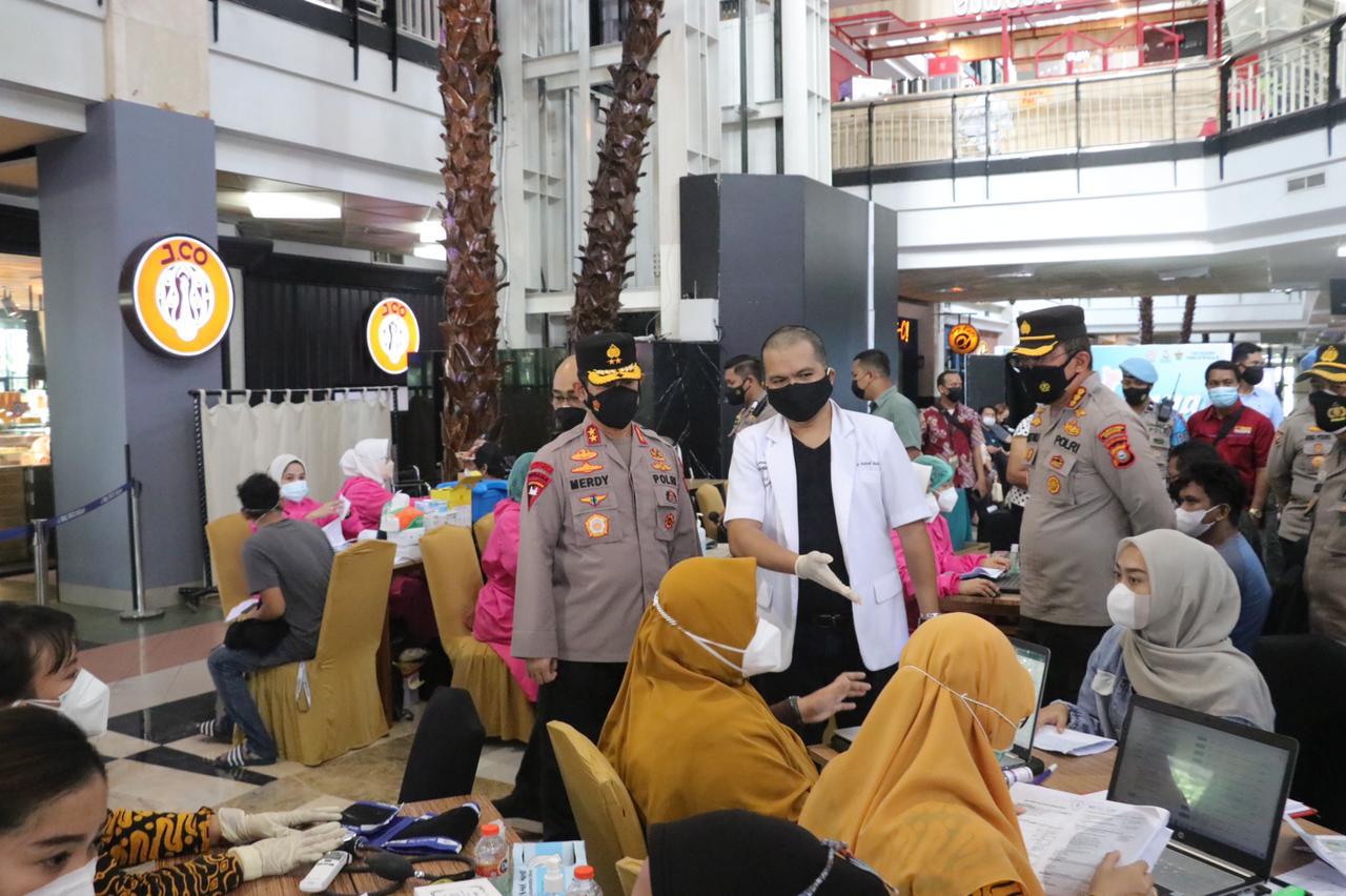 REAKSIMEDIA.COM | Makassar – Kapolda Sulsel Irjen Pol Drs. Merdisyam meninjau gelaran program 10.000 vaksinasi bagi masyarakat kota Makassar yang digelar bersama oleh IDI Makassar, Fajar Group, Kalla Group dan Polda Sulsel, Kamis (29/07/2021) di Mal Ratu Indah, Jl. DR. Ratulangi, Makassar.