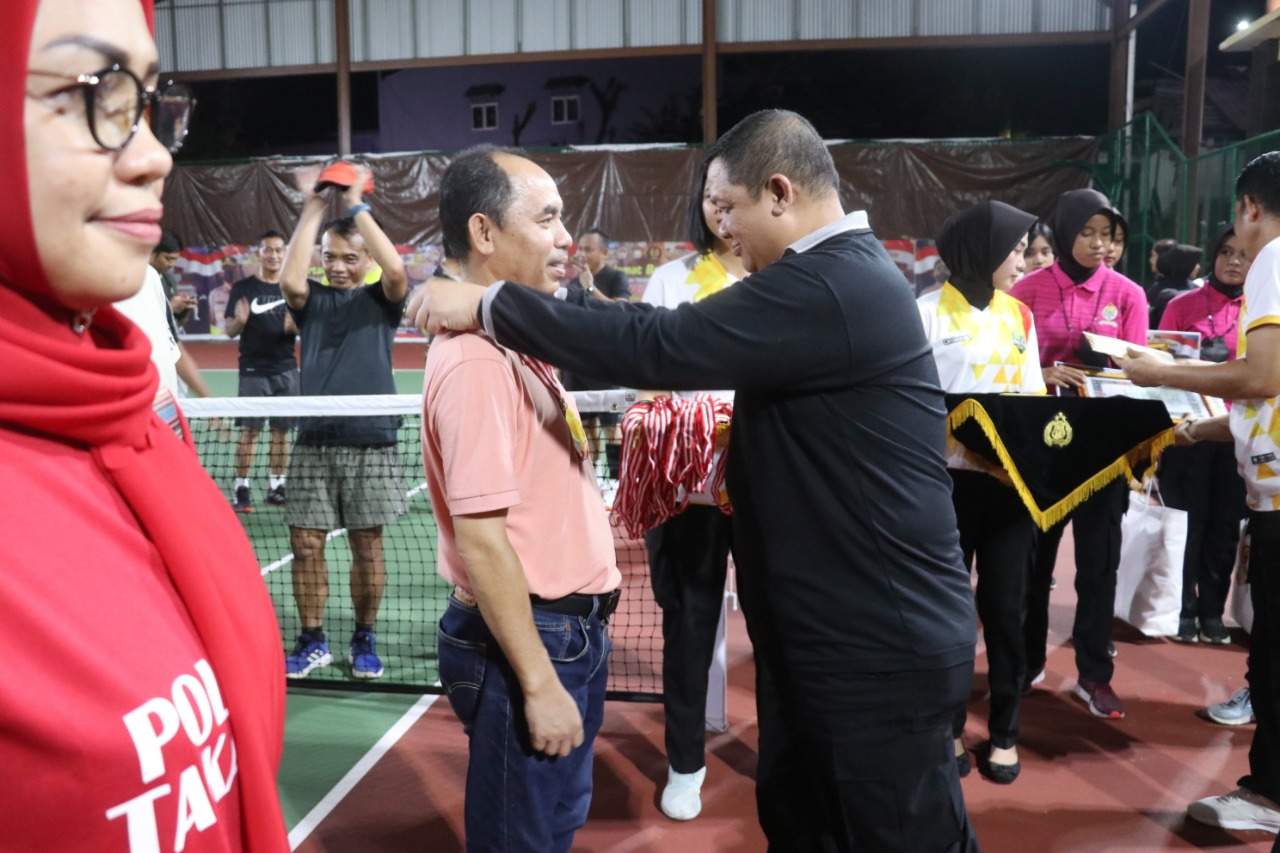 REAKSIMEDIA.COM | Makassar – Kapolda Sulsel Irjen Pol Drs. Nana Sudjana, AS., M.M. Menutup Kejuaraan Tennis Beregu dan Perorangan Kapolda Cup Dalam Rangka Hari Bhayangkara Ke-76 Tahun 2022 di Lapangan Tennis Mapolda Sulsel, Selasa (21/06/2022).