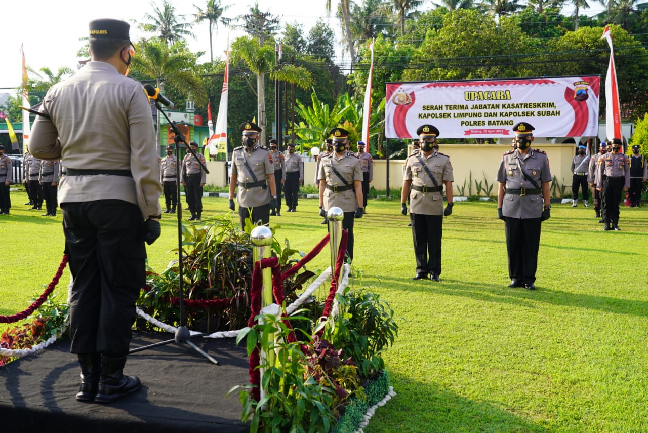 jabatan (sertijab) Kasat Reskrim, Kapolsek Limpung dan Kapolsek Subah di Mapolres setempat, Senin (11/4/2022) sore.
